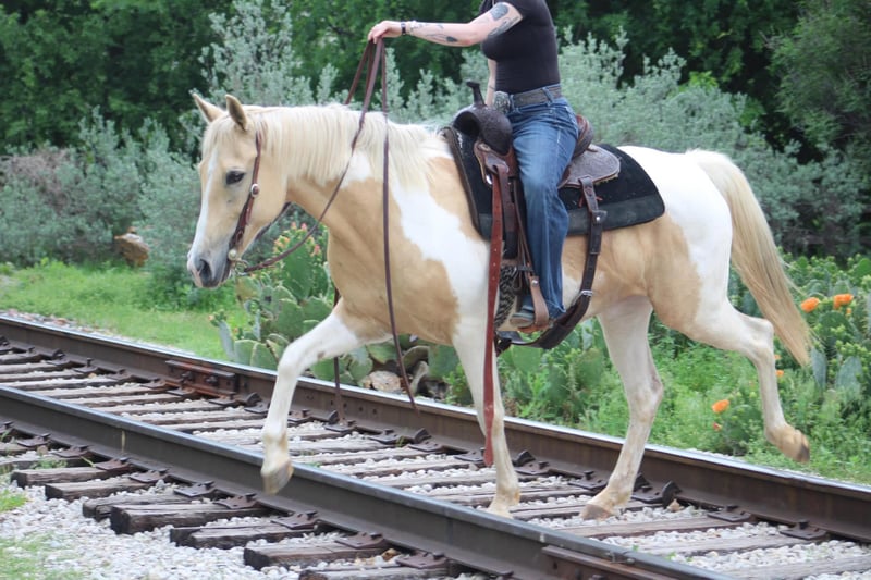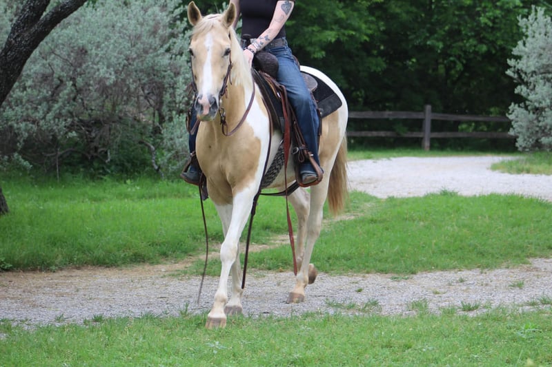 "AVAILABLE ON ONLINE HORSE AUCTION AT www DOT PlatinumEquineAuction DOT com BIDDING OPEN NOW thru SUNDAY | MAY 3RD! *Final price will be determined on auction site* CONSIGNOR CONTACT INFO: MW Horses 254-434-8650 LOCATION: Poolville, TX Jolene is 9 years old palomino paint mare. She stands 14.3 hands tall! She is super fun mare that you can take down the trail with your friends and enjoy! Jolene neck reins good and has a good stop. She will cross water, bridges, logs, and anywhere else you wanna point her to do. W/t/l easy in the arena or outside. She’s been many miles on trails all over. Jolene is great in town. The traffic doesn’t phase her and ready for any adventure you have for her. She is a nice mare looking for a lifelong friend. Jolene can have alittle go under her but if you ask her to stop she listens great. Jolene is looking a dependable rider that likes to ride in groups! Come see Jolene for yourself or we can schedule a FaceTime to meet her! Call or text Makayla with MW Horses at 254-434-8650. Need hauling? We got a list of reliable haulers around the US!