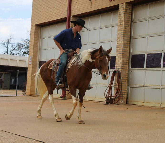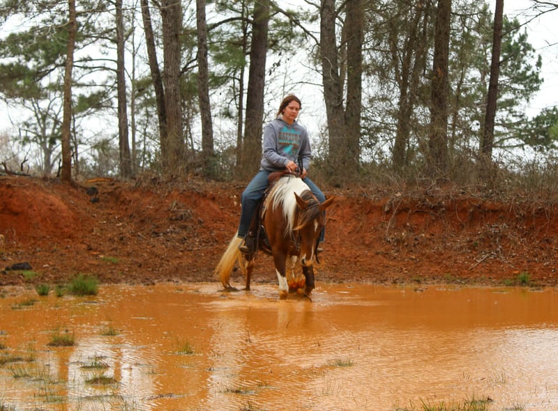 "AVAILABLE ON ONLINE HORSE AUCTION AT www DOT PlatinumEquineAuction DOT com BIDDING OPEN NOW thru SUNDAY | MARCH 8TH! *Final price will be determined on auction site* CONSIGNOR CONTACT INFO: Rileigh Dinges 979-362-0756 LOCATION: Cushing, TX Abby is a 9 year old paint gaited mare, standing 14.3 hands tall and is as flashy as they come! If your looking for a horse that combines beauty, brains, and a gentle temperament? Look no further! This eye-catching mare is gentle, quiet and extremely willing! Abby has been trail rode all over, she goes wherever she is asked, crosses the creeks, logs and bridges great! She has also been around cattle for basic ranch work. she has smooth gates and traveled out great when asked! Abby has been hauled to lots of trail camps, been on overnight camping and does great with anything you throw at her! If you're looking for a trail partner, and a stunning addition to your family, this mare is the one for you! If you would like to schedule a time to come meet and ride Abby, or have any other questions about her feel free to reach out!