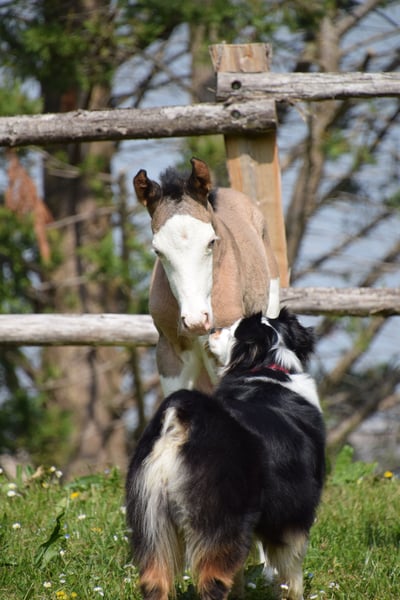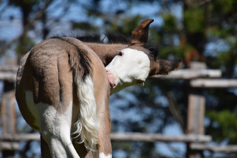 Stunning Paint Horse Filly PP Born March 2026 Grullo Homozygous Splash, with two blue eyes. Panels 7 negative. Sired by Shining C Tyler & Iowa Miss Spice Kay. 80% Quarter Horse in pedigree. Interesting lineage for breeding and/or recreational riding, suitable for amateurs.