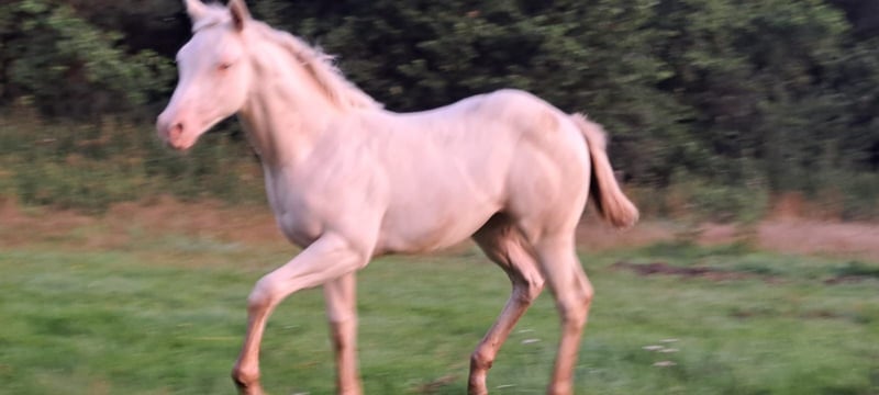 …e sto cercando il mio prossimo compagno speciale! Sono nato il 22 aprile 2025 e da allora esploro il mondo con curiosità e apertura. Il mio colore è smokey cream e sono registrato presso l'APHA e il PHCG. Sono molto socievole, affettuoso con le persone, gestibile al cavalletto e educato dal maniscalco. Il traino non è un problema per me. Naturalmente sono dotato di microchip, sono vaccinato e dewormed. Alla mostra di stalloni a Brema/Ritterhude sono stato il puledro vincitore con un punteggio di 8,15. Questo mi ha qualificato per il Campionato Nazionale dei Puledri a Darmstadt, dove ho ottenuto il 7° posto. Se vuoi conoscermi, contatta subito il mio proprietario Frank Heldt al numero 0176-34507184.