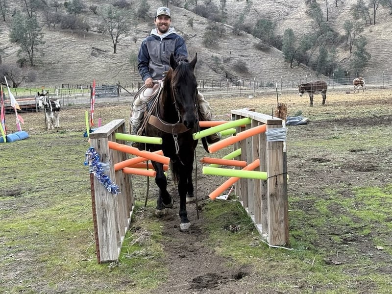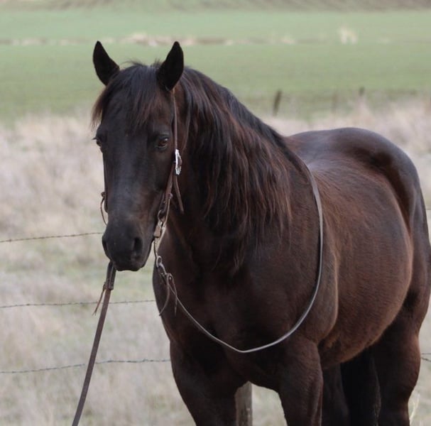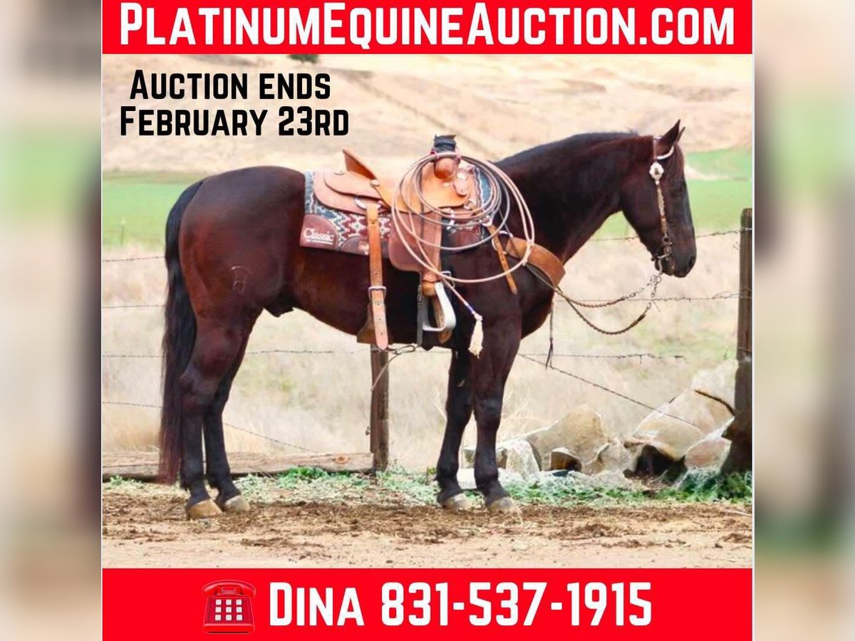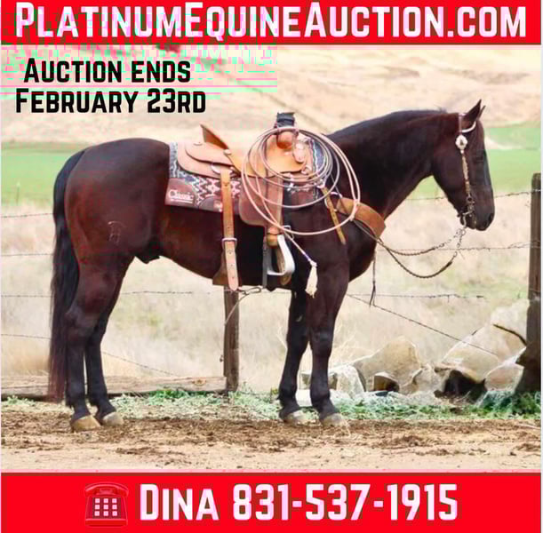ONLINE AUCTION Place your bids at www.PlatinumEquineAuction.com Starting Bid $3500 Auction ends February 23rd, 2025 Need a new saddle? Check out White Rock Saddles on our website or Facebook! We are super excited and proud to offer this exceptionally versatile gelding, he has been one of our go to horses Andre is a stunning 9-year-old dark black bay gelding standing at 14.3 hands. His captivating dark coat is sure to turn heads wherever he goes. Andre is not only beautiful but also incredibly friendly and loving, making him a delightful companion. Whether it’s being your right hand man roping and working cattle on the ranch, or packing your loved ones safely down the trail he can do it all and does it very well! He rides like a seasoned professional, He crosses logs, large creeks, goes right through mud and thick brush and handles rough and steep terrain with ease. He has been on numerous camping trips. We have jumped on him bareback, rides double. He has also been ridden English and does great and is not spooky or reactive to anything. With a wealth of experience, He has also confidently traversed highways, busy streets, orchards, and areas with heavy machinery. Andre is a true people pleaser, exhibiting a gentle demeanor that makes him suitable for riders of various experience levels. He walks, trots, and can easily pick up his lope, showcasing a soft and natural headset. His well-trained skills include fancy spins and smooth stop and back along with a one-hand neck rein that makes him a breeze to handle. The horse is handy broke. His disposition makes him a joy to ride, whether you prefer a leisurely stroll down the trail or a more demanding day working with cattle. This remarkable horse is not only a safe and steady mount but also a source of joy and companionship. Andre is comfortable in new environments. He is calm during tacking up or at farrier appointments. He hauls beautifully and is comfortable riding in groups or alone, ensuring a worry-free experience for his rider. He stalls or Pastures great stands tied and loads in any trailer. Great for the farrier and vet and easy to groom and bath he can be handled by anyone. Andre is ready for any adventure you have in mind. His beauty and kindness truly brighten each day, making him a blessing to own. For more information about Andre , please contact Longhorn Ranch at Dina 831-537-1915, located in Paicines, Ca. I look forward to speaking with you regarding this stellar boy. ONLINE AUCTION Place your bids at www.PlatinumEquineAuction.com Starting Bid $3500 Auction ends February 23rd, 2025 Need a new saddle? Check out White Rock Saddles on our website or Facebook!