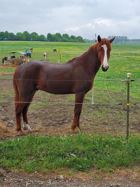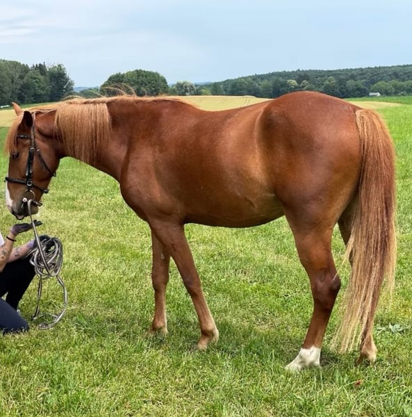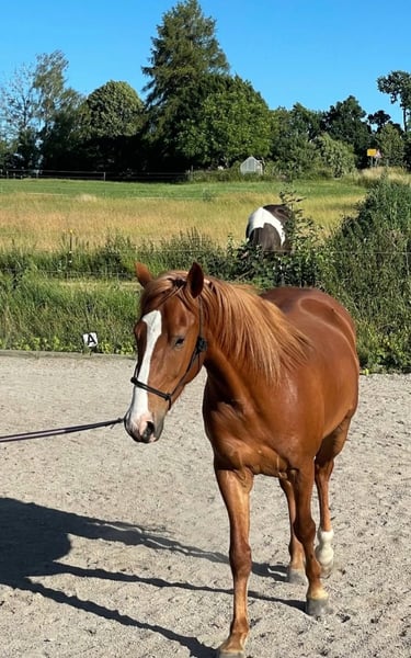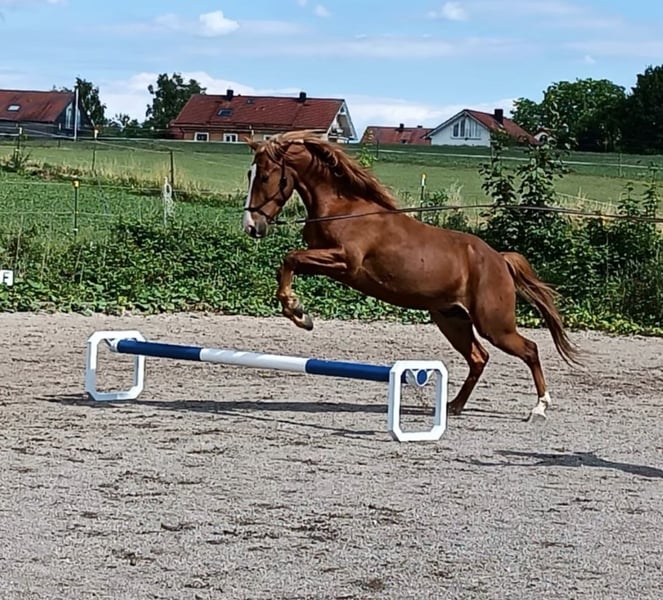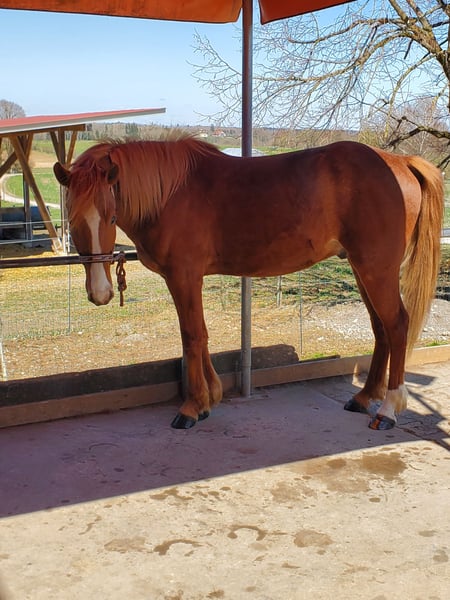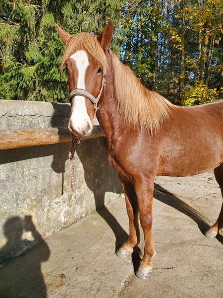 Verkaufe hier meinen Half American Saddlebred Horse Wallach. 5 Jahre alt. 4-Gänger. Stockmaß: 150cm. Nicht für Anfänger oder Kinder geeignet. Sehr sensibel. Leicht zu reiten und fleißig, mit hohen und Raumgreifenden Bewegungen. Braucht eine Person die ihm Sicherheit beim Reiten und im Umgang bietet. Er ist ein Eine-Person-Pferd. Amerikanische Papiere und FN-Pass. Mama: Isländer, Papa: American Saddlebred Horse. Halbbruder zu dem Schwedischen Deckhengst "Playgirl's Next Golden Star GPZ". Deutsch gezogen. Hat eine leichte Stauballergie, die gut zu behandeln ist. Steht im Offenstall. Im Moment Barhufer, hat aber auch schon Eisen getragen. Auf Wunsch können Röntgenbilder gemacht werden. Bei Bedarf kann sein Zubehör mit erworden werden (+500€)