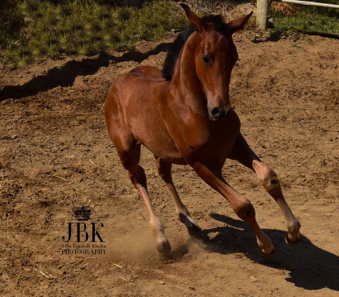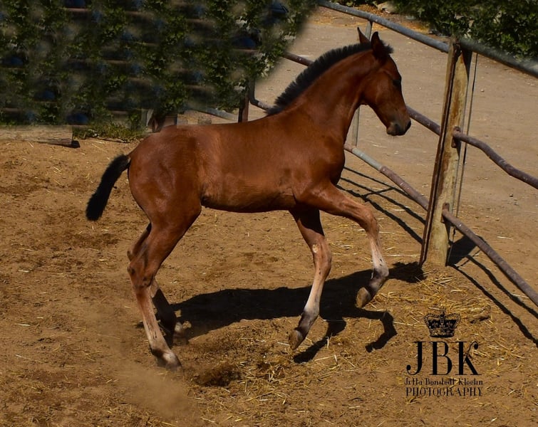 Saleroso deviendra un étalon puissant et baroque. Sa mère mesure 1,62 m, son père, un étalon PRE noir, mesure 1,65 m. Saleroso pourra être remis à la fin du mois d'août. Pour l'élevage, il peut encore rester avec sa mère pour le moment. Ceux qui souhaitent déjà s'assurer de son acquisition peuvent le faire sans hésitation.