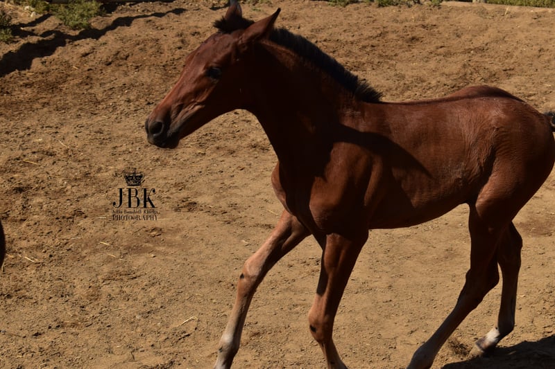 Saleroso será un semental fuerte y barroco. Su madre mide 1,62 m, y el padre, un semental PRE negro, mide 1,65 m. Saleroso podrá ser entregado a finales de agosto. Mientras tanto, puede quedarse con su madre para su crianza; quien desee asegurarse su compra desde ahora, puede hacerlo.