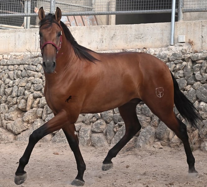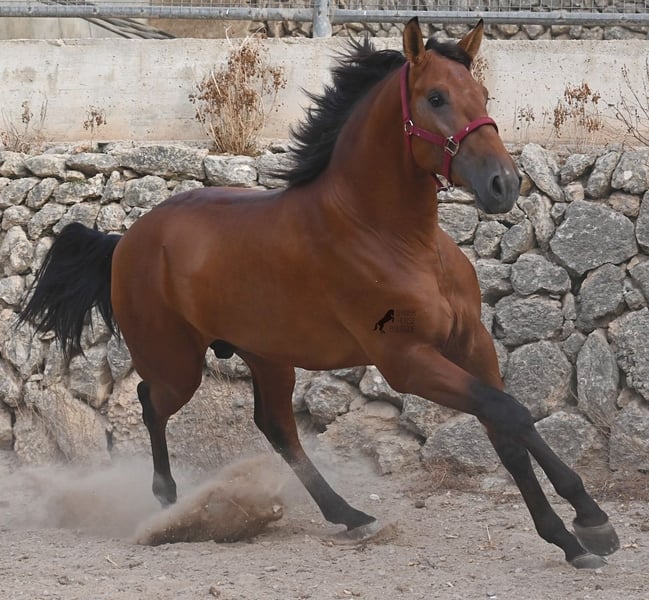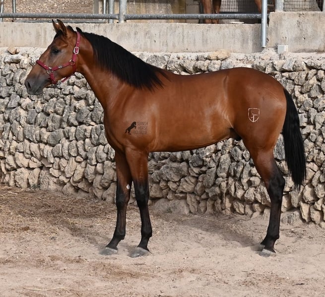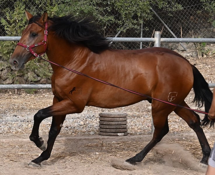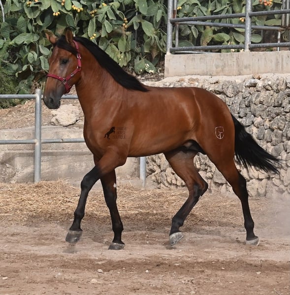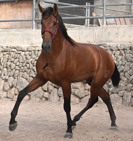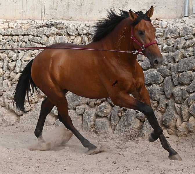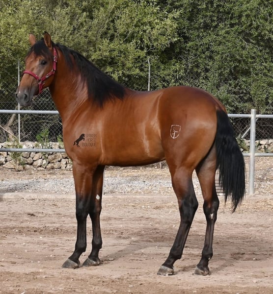 This 2023 born PRE stallion (Andalusian with breed certification from ANCCE) already has an incredible height of 175cm at such a young age! The young man is indeed tall, but he is very gentle, delicate, and well-mannered. At no moment does he use his size against humans – on the contrary, even with a regular stable halter, he behaves well while lunging next to mares. This nobility and quality are reflected not only in his loving upbringing but also in his lineage. His grandfather is the famous YUCATAN DE RAMOS, who has an impressive height of 180cm and is not only a champion but also the son of the ELITE stallion UTRERANO VII from Bohorquez. The father of the young stallion is multiple award-winning and has already reached the world elite more than once through his participation in SICAB. Among others, we find GUARDIOLA and ESCALERA in his pedigree. But back to the tall young man, who is more than just his beautiful papers: he has already been presented at a breeding show (morphology in hand) and is therefore accustomed to being loaded, being in new places, and behaving properly even away from home. He is familiar with both free-range in the stallion herd and box living, coming from a very family-oriented breeder where the horses live closely with the family, and it is kept "small but fine." His movement is promising for various disciplines, and it is already evident that he will be a handsome one. His location is Mallorca; videos and pedigree are available upon request. I would be happy to organize an AKU (veterinary check), castration, transport, or even your travel arrangements should you wish to come and see him in person. Details can be found on my page or in conversation. Greetings from Spain!