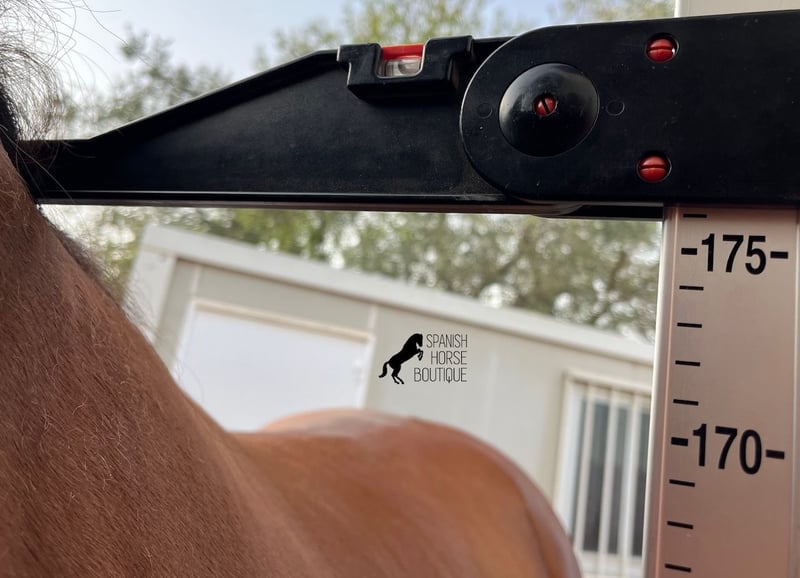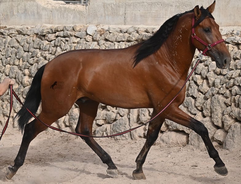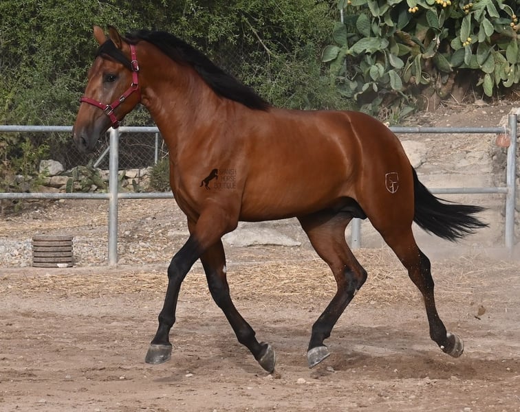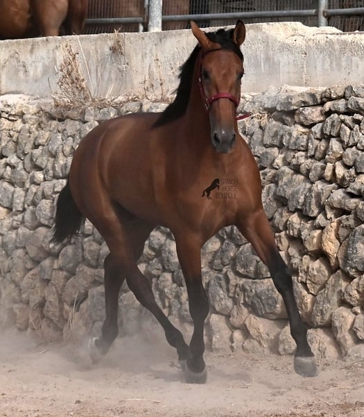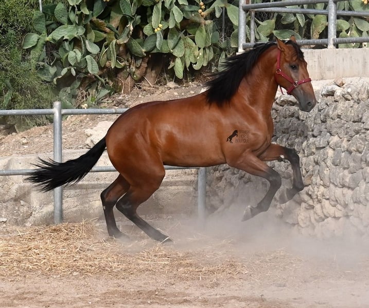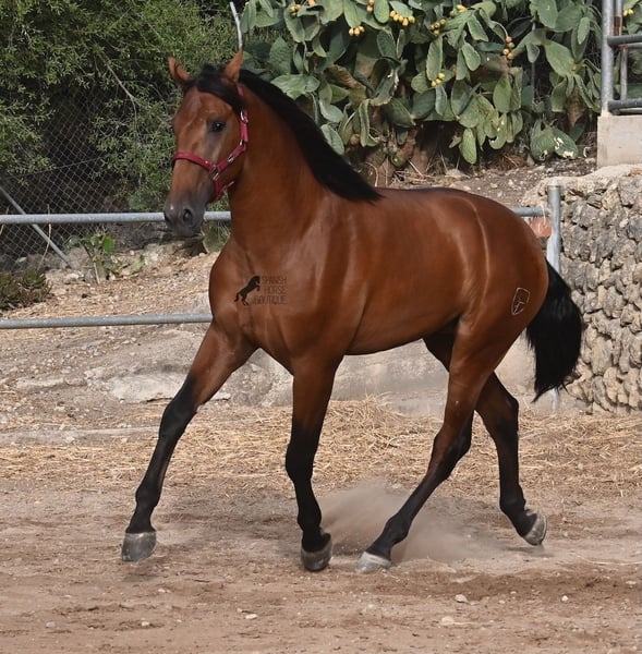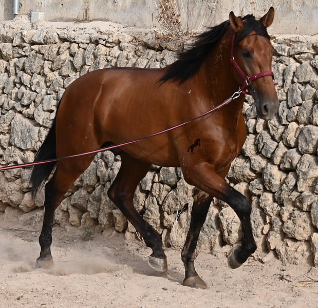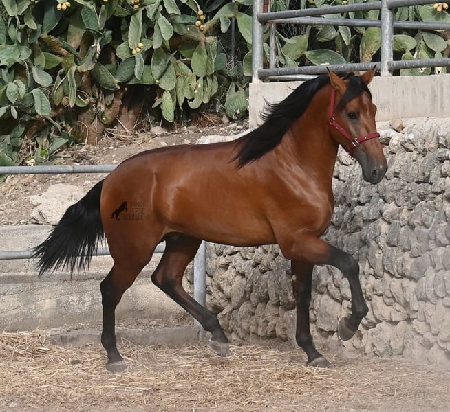 This 2023 born PRE stallion (Andalusian with breed certification from ANCCE) already has an incredible height of 175cm at such a young age! The young man is indeed tall, but he is very gentle, delicate, and well-mannered. At no moment does he use his size against humans – on the contrary, even with a regular stable halter, he behaves well while lunging next to mares. This nobility and quality are reflected not only in his loving upbringing but also in his lineage. His grandfather is the famous YUCATAN DE RAMOS, who has an impressive height of 180cm and is not only a champion but also the son of the ELITE stallion UTRERANO VII from Bohorquez. The father of the young stallion is multiple award-winning and has already reached the world elite more than once through his participation in SICAB. Among others, we find GUARDIOLA and ESCALERA in his pedigree. But back to the tall young man, who is more than just his beautiful papers: he has already been presented at a breeding show (morphology in hand) and is therefore accustomed to being loaded, being in new places, and behaving properly even away from home. He is familiar with both free-range in the stallion herd and box living, coming from a very family-oriented breeder where the horses live closely with the family, and it is kept "small but fine." His movement is promising for various disciplines, and it is already evident that he will be a handsome one. His location is Mallorca; videos and pedigree are available upon request. I would be happy to organize an AKU (veterinary check), castration, transport, or even your travel arrangements should you wish to come and see him in person. Details can be found on my page or in conversation. Greetings from Spain!