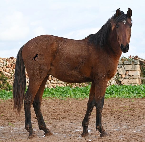 Dieser 2023 geborene PRE Hengst (Andalusier mit Rassenachweis der Ancce), ist ein richtiges Rohjuwel. Der Züchter legt großen Wert darauf, dass die Hengste bis mindestens 3 Jahre in der Hengstherde aufwachsen. So kommt es, dass er bei der Regensaison auf Menorca plüschiges Fell und etwas Panier im Fell hat, aber nur ein Indiz auf das natürliche Aufwachsen ;) Der Youngster ist sehr neugierig und aufgeschlossen und hat keinerlei Hengstmanieren, wobei er noch komplett roh ist. Freunde des klassischen PRE, werden beim Anblick auf seine Abstammung die Augen vor Freude leuchten! Denn er ist ein Sohn des Yeguada Militar (CARTUJANO) Hengstes UCLES II und väterlicherseits komplett Yeguada Militar gezogen! Mütterlicherseits kann sich auch sehen lassen, denn nicht nur hat er Escalerablut, sondern ist sogar ein Abkömmling des ELITEhengstes EDUCADO X von Guardiola! Daher kommt auch seine gute Bewegung und das barocke, nicht zu riesige Exterieur. Aktuell liegt er bei 154cm Stockmaß und wird auch noch einige Zentimeter wachsen, dennoch bestimmt im klassischen Typ des PRE bleiben und kein "Riese" werden. Er ist ein klassicher Brauner mit schwarzen Socken und schwarzer Mähne, aufgelockert durch einen kleinen Stern. Es besteht die Möglichkeit, dass er vor Ort noch antrainiert wird und aufs Reitpferdeleben vorbereitet wird. Für all jene die keinen Hengst halten können, besteht natürlich auch die Option der Kastration vor Ort. Sein Standort ist Menorca. Videos und Abstammung gerne auf Anfrage. Gerne organisiere ich vor Ort eine AKU, Beritt, Kastration, Transport oder auch ihre Reise, sollten Sie persönlich zum Anschauen kommen. Details dazu gerne auf meiner Seite oder im Gespräch. Saludos aus Spanien