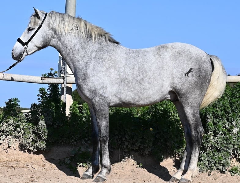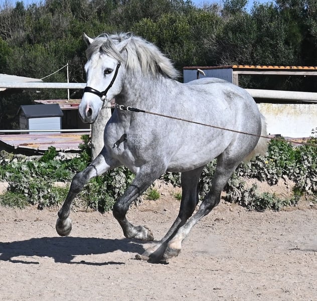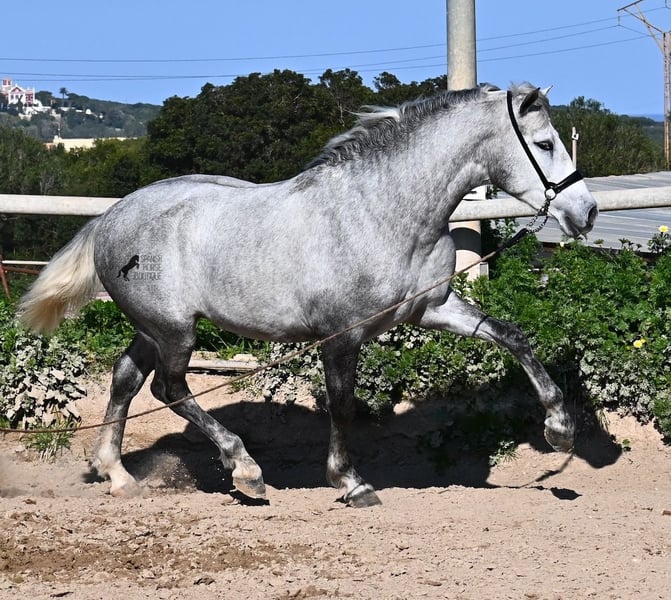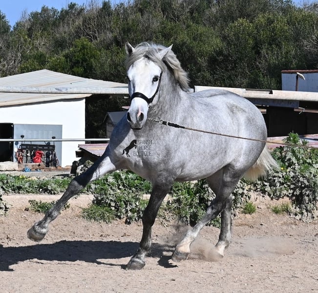 This PRE stallion (Andalusian with ANCCE breed certificate), born in 2023, is a very well-behaved sweetheart! He lived in the herd until December 2024 and is now stabled for a short time to give him a stable basic education before he goes back into the herd - or even better, to you :) He takes the hustle and bustle on the farm in his stride, whether it's dogs, children, tractors or a horse dashing around freely, because just when we wanted to move him, a horse colleague got out and kept the farm on its toes ;) He knows how to be lunged on a halter and can be handled everywhere. He has already been loaded as a weanling and transported to his current stable, so he is no stranger to driving a trailer. At currently 154cm, he will not be too tall, but he will certainly have a nice baroque look, as he already has the baroque exterior for a youngster. He is currently in Menorca! Videos and pedigree available on request. I would be happy to organize an AKU, castration, transport or even your trip if you come to see him in person. Details can be found on my website or in conversation. Saludos from Spain