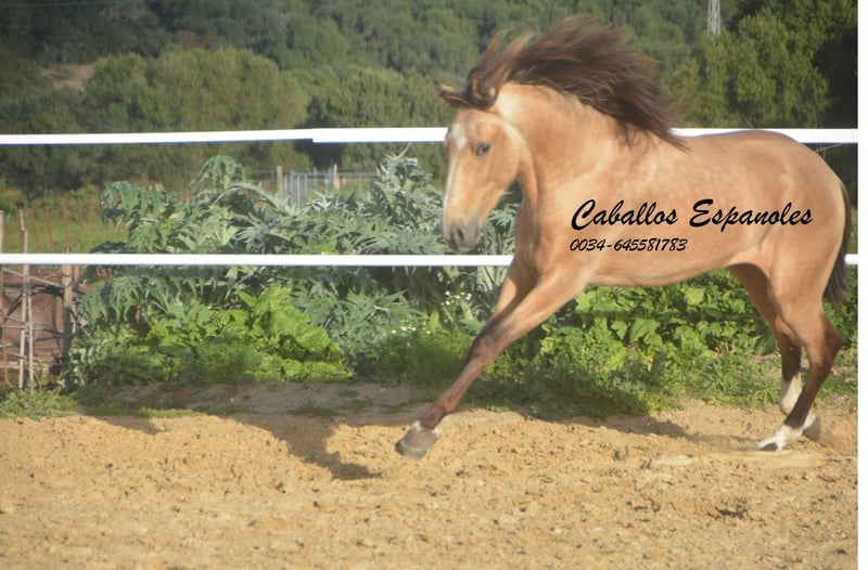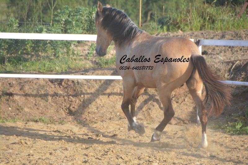 Dieser hübsche andalusische Falbhengst sucht sein foreverhome. Der junge Mann ist neugierig und aufgeweckt. Immer an neuen Dingen interessiert. Er ist gut erzogen und im Umgang brav. Der Hengst ist in angeritten in den drei Grundgangarten. Bei der Arbeit zeigt er sich immer arbeitswillig und mit Spaß am Lernen. Das wird ein toller Freizeitpartner. Das Pferd wird im Auftrag verkauft. Er kann gerne bei uns noch in Beritt bleiben. Eine AKU wird kurzfristig organisiert. Internationaler Transport.