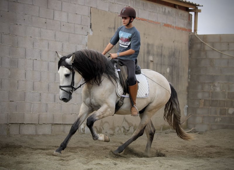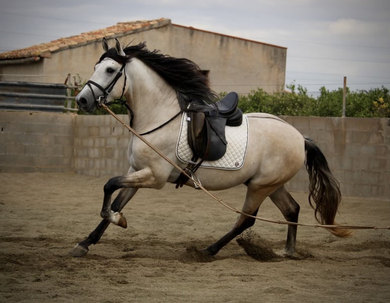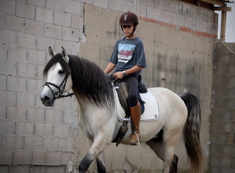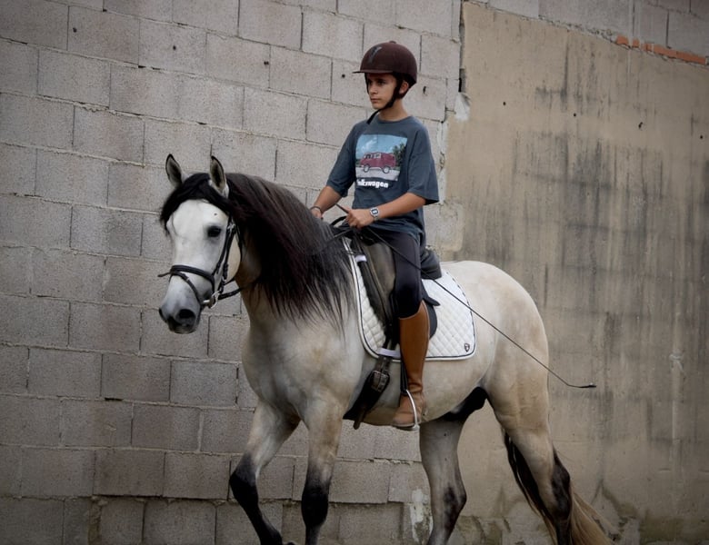 Dieser junge Andalusier lässt wirklich keine Wünsche offen: ein perfektes Gebäude, eine tolle Halsung, ausdrucksstarke Augen, spektakuläre Gänge und dazu noch ein Traumcharakter - was möchte man mehr? Der junge Hengst ALBERO (nicht hengstig, gemischten Stall gewohnt, könnte aber auf Wunsch vor Ort noch kastriert werden) ist wirklich ein TRAUMPFERD in allen Bereichen! Er kommt aus liebevoller privater Hand und wird gerade von einem Vater mit seinem Sohn angeritten. Dies ist möglich, auf Grund seines überaus braven, ruhigen und folgsamen Charakters! ALBERO wird mit entsprechendem Training ein perfekter Allrounder und ein Verlasspferd in allen Lebenslagen werden. Er ist immer gesund gewesen, aktuelle Röntgenbilder werden von Seiten der Besitzer zur Verfügung gestellt. Gerne sende ich bei Interesse aktuelle Videos zu. ALBERO besitzt einen Spanischen Pass ohne Abstammungsnachweis. Standort Spanien.