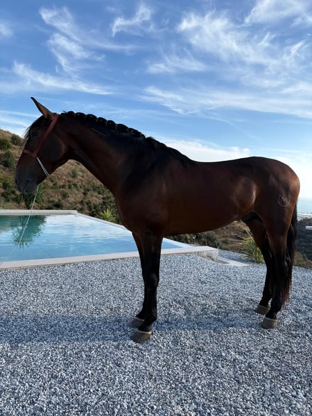 PRE-Hengst, 4 Jahre alt, 16,1 hh (165 cm) mit sehr gutem Temperament! Er geht problemlos auf Ausritte durch die Landschaft, ans Meer, durch die Stadt usw. Ein sehr gut erzogener Hengst mit soliden Grundkenntnissen, bereit für seinen neuen Tanzpartner! Weltweiter Transport möglich 🌏 Zögern Sie nicht, uns für weitere Informationen zu kontaktieren! +31626050647 orionelitehorses@gmail.com