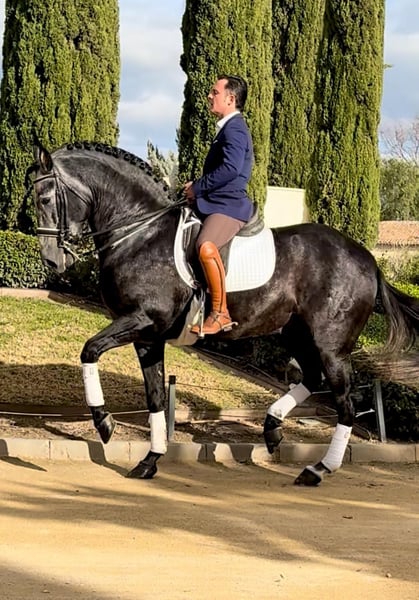 SPECTACULAR PRE Stallion 5 years standing at 16.3hh (170cm)! The pictures do not do him justice, he's got it all. His built, his height his temperament, his bloodlines... It's everything you'd wish for, he really does his breed justice!!! Comfortable gaits, kind kind character, eager to learn and to put in the work. Already performing some PSG exercises. A very promising horse ready for his new very lucky owner. He's piro-free and there are x-rays available. Worldwide transport available 🌏 Do not hesitate to contact us for more information! +31626050647 orionelitehorses@gmail.com