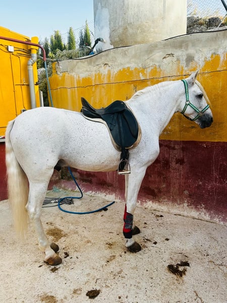 Gelding He is 11 years old. He is an Andalusian horse with a passport. He is very fun for the whole family to enjoy. He is absolutely not afraid of anything. He walks on roads and paths with cars and other horses (see video). He is completely healthy, with no wounds, cuts, scars, and no melanomas (see video). He is an economical and fun horse. For more information WhatsApp: +34 612 21 92 56 Email: info.equisur@gmail.com