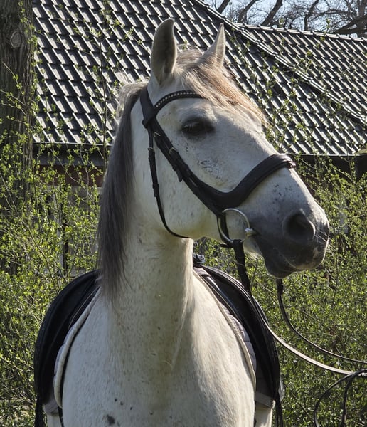 Jonny is a approximately 15.3 hh Spanish gelding, living in Germany since 2018. He is a wonderful horse for the whole family. In dressage, he performs at A-level, is familiar with small jumps, and enjoys trail riding. He has also participated in Working Equitation clinics, is experienced in riding out with a lead horse, horseball, anti-spook training, ground work, and much more. Jonny is such a cool little guy. In handling, he is a sweetheart; he is herd-friendly, shoeable, and loading-safe. He has always been healthy so far and is a very robust horse. Jonny is being sold with tack and accessories. If you're interested in videos, please contact us directly via WhatsApp at: 0177/2721831. For more information, feel free to call us directly. We look forward to hearing from you.