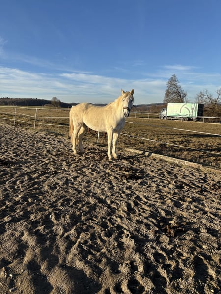 Schweren Herzens habe ich mich dazu entschieden, meinen 14-jährigen, ca. 1,55 m großen Spanier-Mix Wallach abzugeben. Ursprünglich war er als zukünftiges Schul- und Anfängerpferd geplant. Leider hat sich nach seiner Ankunft bei uns gezeigt, dass er diesem Anspruch nicht gerecht wird. Der Wechsel in eine neue Herde hat ihn sehr gestresst, und er braucht deutlich mehr Zeit und eine feste Bezugsperson, die ihm Sicherheit gibt. Er ist ein sehr lieber, aufgeschlossener und menschenbezogener Wallach mit gutem Charakter. Allerdings ist er sehr herdenbezogen und ungern alleine – wird er von der Herde getrennt, reagiert er nervös und ruft viel. Dabei zeigt er keinerlei Unarten wie Steigen, Bocken oder Durchgehen. Sowohl bei uns als auch bei der Vorbesitzerin war er stets brav im Umgang. Er lässt sich gut verladen und hatte bisher keine bekannten gesundheitlichen Probleme. Er wird nicht als Anfänger- oder Kinderpferd abgegeben. Ich glaube, dass er sich gut entwickeln wird, wenn er eine feste Vertrauensperson hat, die ihm Sicherheit gibt. Bei der Vorbesitzerin sind schon Kinder auf ihm frei geritten. Dort war er ein absolutes Verlasspferd. In der Herde zeigt er sich absolut unproblematisch und kommt mit wirklich jedem zurecht, das innerhalb von kürzester Zeit. Er kennt Offenstall sowie auch Boxenhaltung. Er stand bereits mit Stuten und auch Wallachen zusammen. Das war beides kein Problem. Für ihn wünsche ich mir einen ruhigen, beständigen Platz bei einer erfahrenen Person, die ihm Zeit gibt anzukommen, ihm Sicherheit vermittelt und bei der er alt werden darf. Bei Interesse freue ich mich über eine Nachricht mit kurzer Vorstellung.