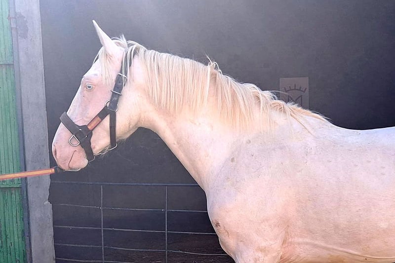We are offering our wonderful young gelding Pegaso (born May 2023) for sale – a real eye-catcher in the extraordinary special color Cremello with the best prerequisites for a versatile future. Pedigree & Rearing: Pegaso comes from a carefully selected pairing of Andalusian and Lusitano – two Iberian breeds that combine elegance, rideability, and a strong character. He is being sold directly by the breeder and is raised in a species-appropriate manner: in a herd, on large pastures, and outdoors year-round – the best conditions for a healthy, balanced horse with strong nerves and good social skills. Prospects & Uses: Pegaso has everything it takes to shine in various disciplines later on: ✔️ Baroque Riding ✔️ Dressage ✔️ Working Equitation ✔️ Leisure and Trail Riding His current height at the withers is age-appropriate – the expected final height is around 1.60–1.64 m. His father, an impressive Cremello stallion standing at 1.68 m, can be seen in the last photos of the advertisement – as well as Pegaso as a foal with his mother. Special Features: ✨ Special color Cremello – absolutely rare and noble ✨ Great movements & correct conformation ✨ People-oriented, curious, and intelligent ✨ Directly from the breeder – well-socialized and raised Pegaso is currently still untrained and ready to be handed over to loving and competent hands that wish to further develop his potential. Of course, he is familiar with grooming, washing, tying, and leading. We are happy to arrange transport.