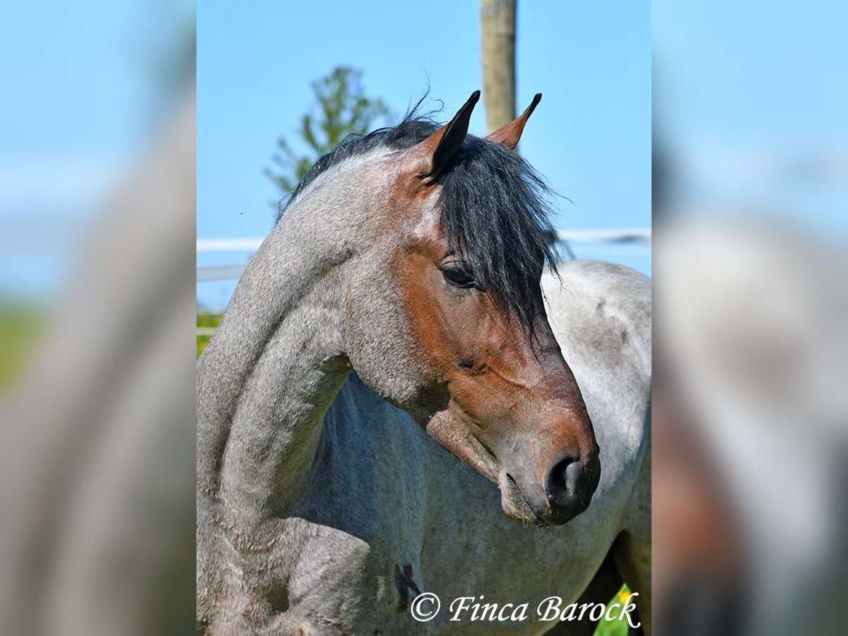Breed: Andalusian Name: Paulino Gender: Gelding Height: Approx. 14.8 hh (still fully growing) Date of Birth: September 15, 2023 Color: Roan Price: €5,900 Sire: Unknown Dam: Unknown Paulino combines the rare roan coat color with an incredibly friendly personality and good movement! This little guy is still in full growth and will gain a few more centimeters and overall size. He is lunged in the round pen and is a true gentleman. Paulino is well-behaved, familiar with typical farm noises and dogs. He finds walks exciting and enjoys discovering new things! Overall, he shows courage and openness. He is affectionate and approachable with people and is used to herd life. With Paulino, you get a genuine diamond in the rough, perfect for self-training. His fearless nature and agility also make him a great candidate for working equitation.