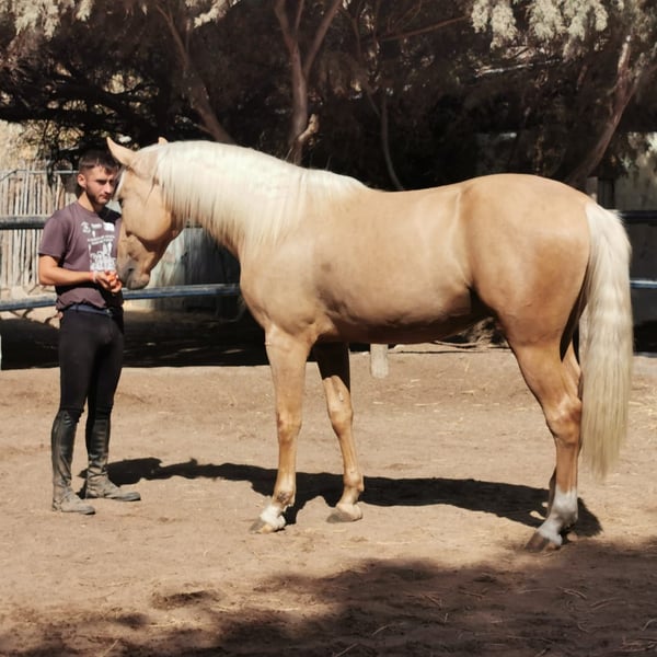 Na sprzedaż piękny konik palomino, to wyjątkowy koń zarówno ze względu na swoją sierść, jak i wspaniałe usposobienie. Jaleo jest bardzo łagodny, chętny do nauki i udziału we wszystkim, to radosny koń, który bardzo lubi ludzi. Prezentuje doskonałe ruchy i ma charakter barokowy. Bardzo łagodny pod siodłem, zarówno w terenie, jak i na maneżu, zaczyna też wychodzić na ulice. Koń, którego można po prostu cieszyć się jazdą. Prawdziwy skarb w pełnym rozwoju. Więcej informacji i filmy na adres: aliciagalera31@gmail.com, telefon WhatsApp (694447297).