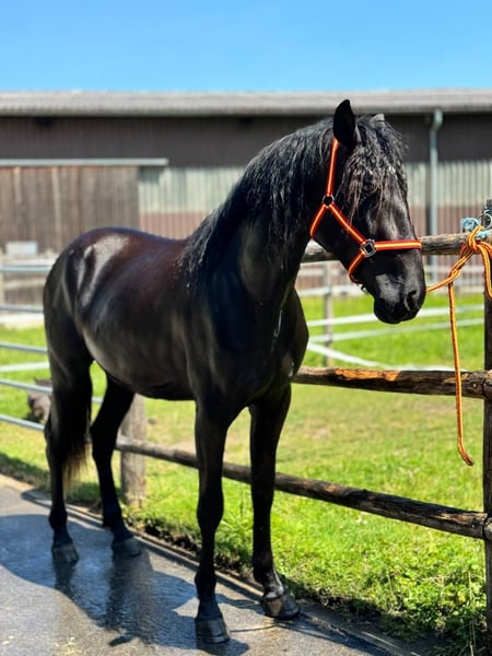 Standort: Schweiz, Kanton Zürich Geburtsdatum: 20.04.2022 (3,5 Jahre alt) Stockmaß: ca. 170 cm, noch im Wachstum Vater: Breamo (Ex Breamo de Garabana) Mutter: Hacendada JJ Herkunft: Spanien, eingetragen bei ANCCE Fletcher MR ist ein junger spanischer Wallach mit beeindruckender Größe, ausdrucksvollem Typ und einem außergewöhnlich intelligenten und ausgeglichenen Temperament. Er ist sehr menschenorientiert, lernt schnell, ist gesellig und freundlich. Trotz seiner beeindruckenden Statur bleibt er einfach im Umgang und aufmerksam gegenüber Menschen. Ausbildung und Arbeit • Wird seit etwa einem Jahr regelmäßig am Boden ausgebildet • Kennt alle drei Gangarten an der Longe, Übergänge und Halten • Führt seitwärts Bewegungen am Boden mit Gebiss und Cavesson aus • Zeigt den spanischen Schritt und die „Trapez“-Übung • Arbeitet an der Doppellonge • An Sattel und Zaum gewöhnt, ein Reiter hat mehrmals ohne Sattel auf ihm gesessen Das Training ist ruhig und sanft, angepasst an sein Wachstum und seine Entwicklung. Pflege und Gesundheit • Wird in einem aktiven Stall gehalten, lebt in einer Herde, sozial und unkompliziert • Impfungen und tierärztliche Untersuchungen sind auf dem neuesten Stand • Zähne wurden kürzlich überprüft • Vollständiger Röntgenbefund verfügbar • Vollständig versichert für ein Jahr Abstammung Sohn von Breamo (Ex Breamo de Garabana) und Hacendada JJ – eine Kombination aus einigen der ältesten und angesehensten PRE-Blutlinien, einschließlich Gorron XIII, Remache XIII und Dominante XVI. Diese Linien sind bekannt für ihre harmonische Konformation, Versammlung, elastische Bewegungen und zuverlässigen, ausgeglichenen Charakter. Fletcher hat die Ausdruckskraft, Intelligenz und Arbeitsbereitschaft geerbt, die für diese Blutlinien typisch sind. Verkaufsgrund Der Wallach wurde ursprünglich als Familienpferd gekauft, muss jedoch aufgrund persönlicher Umstände verkauft werden. Nur in gute, fürsorgliche Hände zu verkaufen. Preis: Attraktiver Preis für ein Pferd dieser Qualität aufgrund der Dringlichkeit.