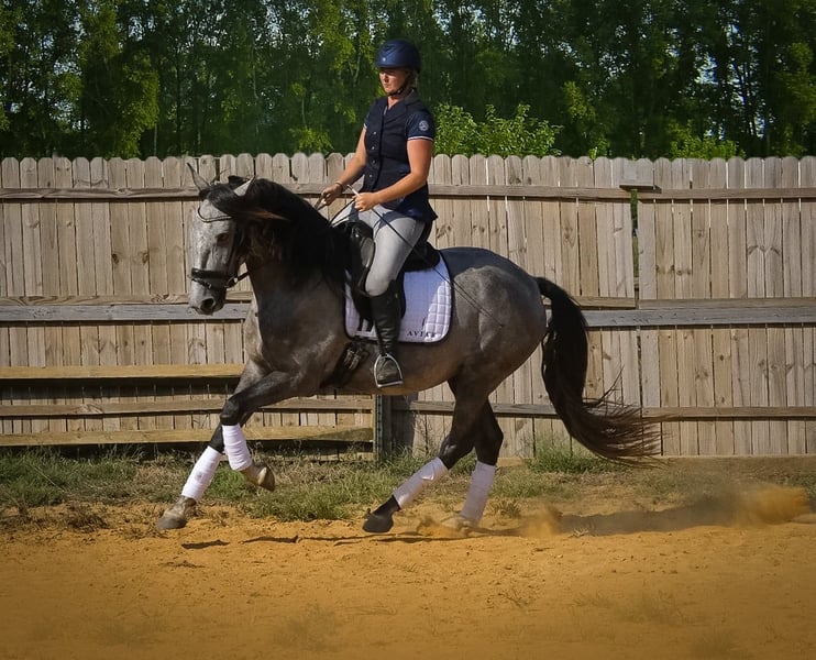 ❤️🔥𝑩𝒆 𝑴𝒊𝒏𝒆 𝐒𝐄𝐋𝐄𝐂𝐓❤️🔥 Happening now thru MONDAY | FEBRUARY 9th - Available EXCLUSIVELY on HorseBid's website! For more details and to register visit: www.Horsebid.com CONSIGNOR CONTACT: Rebecca Ashley 607-743-1309 LOCATION: Troutman, NC BREED: Andalusian REGISTERED: Yes REGISTERED NAME: RHF Tarragon COLOR: Grey HEIGHT: 16 AGE: 5 GENDER: Gelding Tarragon is a 5-year-old registered PRE Andalusian gelding with an exceptional brain and a very amateur-friendly temperament. He is soft, straightforward, and uncomplicated to ride, comfortably going on a loose rein or stepping into correct contact when asked. Although trained in dressage, Tarragon is versatile and could easily transition to western disciplines, including Ranch Horse classes, Horsemanship, and Western Dressage. He has an excellent foundation with lateral work and balanced transitions, including leg yield, shoulder-fore, shoulder-in, haunches-in, half pass, extension, and collection. Tarragon was competed at the 2025 IALHA Championships at WEC Ocala, placing 4th out of 13 horses in a large Dressage Suitability class. He is currently schooling Second Level dressage. He has a green flying change in one direction and confirmed simple changes. He is extremely comfortable to ride, with smooth gaits that feel slow and easy in the saddle even when moving forward. He has good brakes and a reliable stop, making him suitable for timid or amateur riders. If unsure, he will quietly stop and assess rather than react. Tarragon is excellent in show environments and enjoys going new places. He is easy to haul, stands tied at the trailer, and handles day parking and showgrounds without issue. He lives outside 24/7 but stalls easily at overnight shows. He is kind with kids and teen riders and remains rideable and forgiving, though like any young horse, he benefits from clear, consistent aids. He stands quietly at the mounting block for mounting and dismounting and is easy to handle on the ground, in cross-ties, and when leading. He can have time off and come back the same horse. He is food motivated, eager to learn, and consistently wins over amateur riders. His breeder is supportive of showing and may assist the new owner with stalls or entry fees once per year at IALHA-recognized shows. Virtual lessons and post-sale support are available to ensure a successful transition for Tarragon and his new rider.