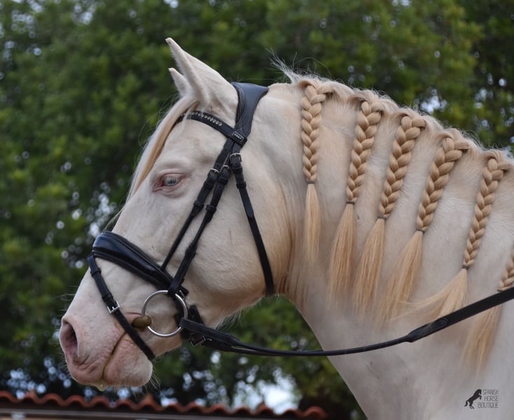This Andalusian stallion, born in 02/2020, is an absolute sweetheart! Since weaning, he has grown up with his owner under the best care and enjoys a wonderful life in his large paddock, with horse buddies around him and lots of dogs to keep him company. The owner is very keen on dressage and he has the talent and movement for it. Unfortunately, at 148cm, he is a little short to compete properly. We are therefore looking for a good home for this darling. He already has competition experience and behaves really well for a young stallion, even outside his usual environment. At home he is absolutely cool and not at all stubborn, although there is of course the option of castration on site. Under saddle, he has a correct, age-appropriate basis on a water snaffle and is not only suitable for dressage, but also for working equitation or western riding, as he is short and very agile. His strong back is particularly great for a young horse, which reflects the correct training. He also has beautifully clear legs, which I captured on video ;) The seller preferred to wrap up her darling for the free run :) An absolute gentleman and a horse of the heart, with a big heart, in a small format. Price according to the quality. He is currently in Mallorca! Videos available on request. I am happy to organize an AKU, castration, riding, transport or even your trip, should you come to see him in person. Details can be found on my website or in conversation. Saludos from Spain
