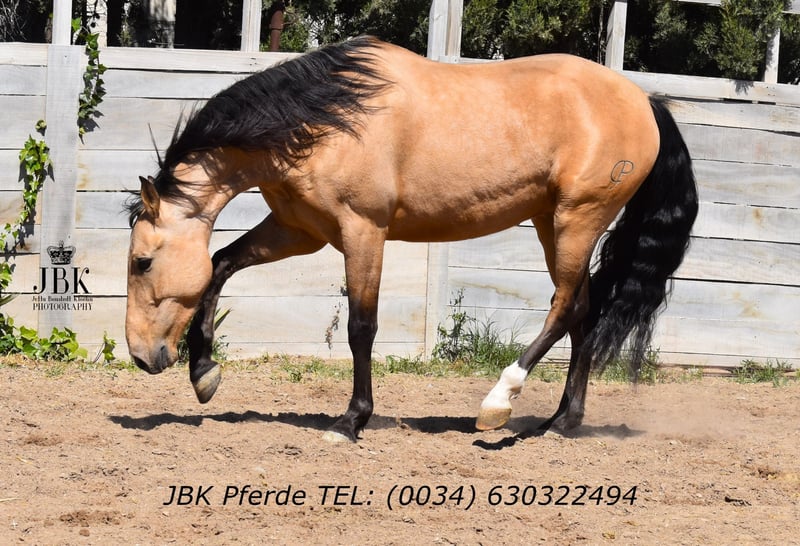 Gringo wurde am 07.08.2020 geboren. Er stammt von PRE Eltern ab, seine Mutter ist jedoch nicht gekört, also kein Eintrag im Ancce Stutbuch. Das tut seiner Qualität natürlich keinen Abbruch. Er ist super wendig, mega gut erzogen, absolut brav in allen Lebenslagen. Solide geritten ebenso. Sämtliche Fragen, ob er buckelt oder irgendetwas falsch macht, erübrigen sich hier absolut. Anbinden, Putzen, Führen, Reiten. Er macht das alles vorbildlich. Ein pferd mit dem man sofort loslegen kann, nach Eingewöhungszeit in seinem neuen Zuhause natürlich.
