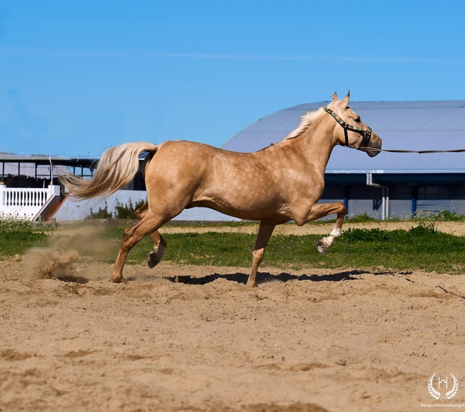 PRÍNCIPE MONTE ALEGRE ♦️ 2020 | 1,60 m | Palomino ✨ Koń, w którym zakochasz się od pierwszej chwili ❤️ 🐴 Príncipe to palomino wałach, z trzema białymi nogami i pręgą grzbietową, posiada europejski paszport. Klasyczny, wytrzymały i o imponującej prezencji. ✨ Idealny dla dzieci i początkujących jeźdźców Doskonały do jazdy w terenie i spokojnych przejażdżek. Bardzo dobrze ujeżdżony, doświadczony w pracy w terenie oraz na pokazach i wydarzeniach. 💫 Charakter: Szlachetny, uczciwy, pracowity i bardzo zrównoważony. Łagodny, łatwy i bezpieczny… „koń na całe życie.” 🎯 Wysoki poziom doma vaquera: Zmiany nogi w galopie, piruety proste i odwrotne. Pracuje na wędzidle, munsztuku oraz na dwóch i czterech wodzach. 🌿 Obszerne, elastyczne i płynne ruchy, kompaktowa i piękna budowa. Delikatny kontakt i doskonała jezdność. 🛡️ Niczego się nie boi: 100% pewny w terenie. 📅 Urodzony 19.03.2020 ❤️ Gwarancja bezpieczeństwa i przyjemności — idealny dla dzieci i osób bez doświadczenia. 📲 Napisz do nas na WhatsApp (+34 639522420), jeśli masz pytania lub potrzebujesz więcej informacji. Z przyjemnością pomożemy!