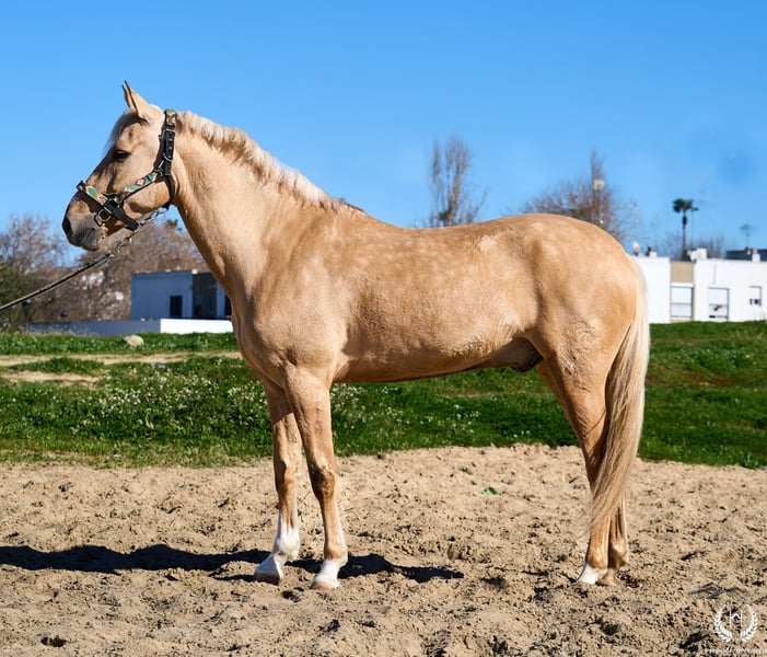 RÍNCIPE MONTE ALEGRE ♦️ 2020 | 1,60 m | Palomino ✨ Ein Pferd, das vom ersten Moment an begeistert ❤️ 🐴 Príncipe ist ein palominofarbener Wallach, dreifach weiß gezeichnet mit Aalstrich und EU-Pass. Klassisch, robust und mit beeindruckender Ausstrahlung. ✨ Ideal für Kinder und Anfänger Perfekt für Ausritte und entspanntes Reiten. Sehr gut ausgebildet, erfahren im Gelände sowie auf Messen und Veranstaltungen. 💫 Sein Charakter: Edel, ehrlich, arbeitswillig und mit hervorragendem Kopf. Sanft, unkompliziert und sehr sicher… ein echtes “Pferd fürs Leben.” 🎯 Hohes Niveau in Doma Vaquera: Galoppwechsel, direkte und inverse Pirouetten. Geht perfekt auf Trense, Kandare sowie mit zwei oder vier Zügeln. 🌿 Große, elastische und fließende Bewegungen, kompakter und schöner Körperbau. Weiches Maul und hervorragende Rittigkeit. 🛡️ Erschrickt vor nichts: 100% zuverlässig im Gelände. 📅 Geboren am 19.03.2020 ❤️ Garantie für Vertrauen, Sicherheit und Freude — ideal für Kinder und unerfahrene Reiter. 📲 Schreiben Sie uns per WhatsApp (+34 639522420) bei Fragen oder für weitere Informationen. Wir helfen Ihnen gerne weiter!