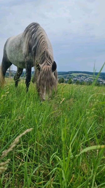 Würde wenn alles passt meinen Andalusier verkaufen wegen Umstieg auf Isländer. Er ist 2018 geboren ca 1.53 groß und total unerschrocken. Er kennt im Gelände praktisch alles und geht überall durch und rein.Auch Straßenverkehr ist kein Problem für ihn . Er Schwimmt mit dir und er springt sehr gut. Sogar über ein 1.60m Tor wenn er seine 5 Minuten hat. Er ist dennoch kein Pferd für Anfänger da er wenn er testet stark sein kann und auch nach dem Sprung stark wird. Er steht im Saarland. Er ist durchgeimpft da er schon kleine Turniere ging. Er ist Barhufer . Schmiede und verladefromm Hat keine Allergien und ist ansonsten auch kerngesund