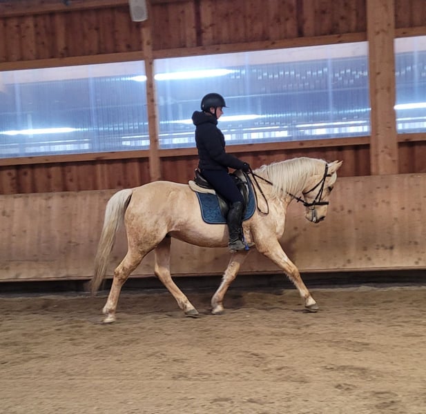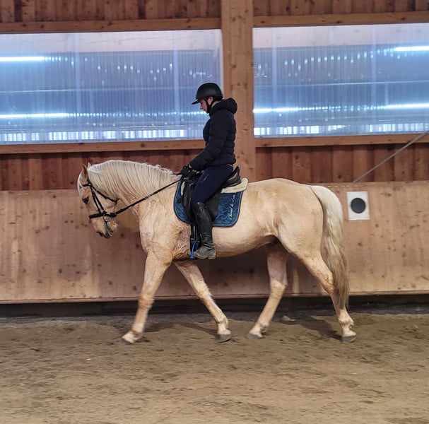 SOLO ist ein wunderschöner Cruzado Wallach der Extraklasse. SOLO ist sehr ruhig im Umgang und hat ein völlig ausgeglichenes Gemüt. SOLO ist sehr menschenbezogen und orientiert sich lieber nach seinem Menschen als nach seinen Artgenossen, mit denen er sich aber auch hervorragend versteht. SOLO ist ein absoluter Allrounder. Ob im Gelände, Halle, Dressurviereck oder Allwetterplatz, SOLO ist immer sehr aufmerksam, konzentriert und routiniert bei der Sache. Bodenarbeit und die Arbeit mit Kindern und Jugendlichen steht bei SOLO ebenfalls hoch im Kurs. Durch seine von Gott gegebene Ruhe und Gelassenheit, fühlt man sich sehr schnell sehr gut bei ihm aufgehoben. Er ist sehr bequem zu sitzen und auch leichtrittig. SOLO verzeiht Reitfehler und passt sich seinem Reiter an. SOLO empfiehlt sich für den Wiedereinsteiger, den noch etwas ungeübten Reiter oder für den Umsteiger vom Pony zum Pferd. Wobei auch der routinierte Reiter seinen Spaß mit diesem Prachtburschen haben wird, denn SOLO empfiehlt sich besonders auch für das Dressurviereck. SOLO ist ein Allrounder, ein herzensgutes Pferd, das sehr viel Freude und Spaß macht. Weitere Informationen über unsere Pferde und unsere Arbeit erhältst du unter ww.ps-seitle.de oder speziell unter: http://pferdesport-seitle.blogspot.com/?m=1 gerne auch telefonisch oder per WhatsApp unter den Telefonnummern 0171/5269002 Hubert Seitle 0151/12775701 Uta Großmann THERA-PFERDE PferdeSport Seitle im DONAUMOOS