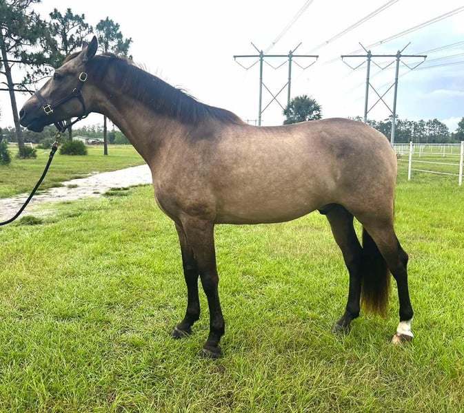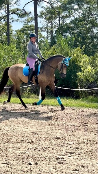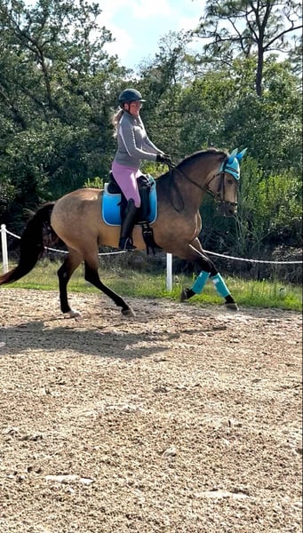 ONLINE AUCTION Place your bids at www.PlatinumEquineAuction.com Starting Bid $3500 Auction ends August 24th, 2025 Need a new saddle? Check out White Rock Saddles on our website or Facebook Cortez XVII is a 16.1hh, Imported 2019 PRE buckskin gelding. FEI prospect with GP potential confidently working 2nd level and schooling 3rd. Preparing to make his show debut this August at the World Equestrian Center (WEC Ocala). Three fantastic adjustable gaits and clean lateral work. Amateur-friendly with the expression and ability for a pro. His training has been carefully developed with a correct foundation in classical dressage by an FEI trainer and he continues to progress with strength and confidence. Highlights: Second Level movements: shoulder-in, haunches-in, counter-canter, and simple changes. Naturally balanced with suspension and uphill, with an expressive trot and soft contact Enjoys attention and being with his human, easy to handle, ties and stands for farrier. Comfortable enough for an AA or junior, talented enough for a professional. Barefoot with excellent feet and PPE welcomed at buyers expense. Pedigree: Sired by Rondeño LXXV (by Carmelo II) Out of Bailarina XC (by Jilguero XXII) Traditional Spanish bloodlines paired with modern athleticism and rare buckskin color Located in Christmas, FL. Contact Rebecca Rodriguez 407-496-0088 with any questions. ONLINE AUCTION Place your bids at www.PlatinumEquineAuction.com Starting Bid $3500 Auction ends August 24th, 2025 Need a new saddle? Check out White Rock Saddles on our website or Facebook