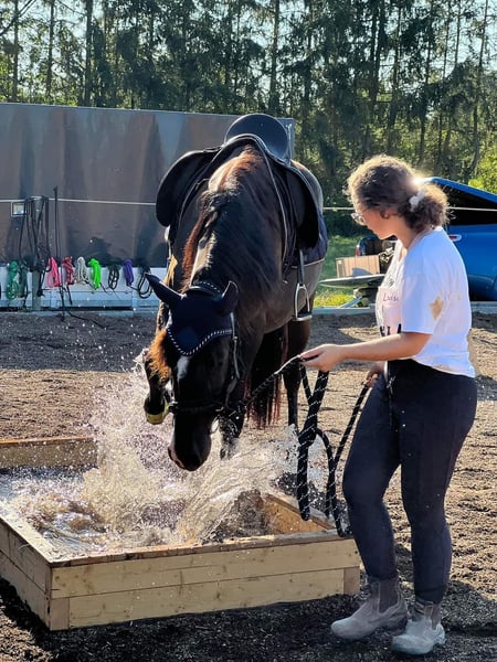 Aus persönlichen Gründen suche ich für meinen 8-jährigen Spanierwallach Checo ein neues Zuhause. Checo ist ein herzensguter, freundlicher Kerl. Er ist super händelbar, kann aber auch ein Schlitzohr sein und benötigt daher eine konsequente und faire Führung (kein Anfängerpferd). Er ist freizeitmäßig geritten, longiert, geht alleine ins Gelände, arbeitet gerne in der Freiarbeit und an Zirkuslektionen und kennt die Grundlagen der Doppellonge sowie Handarbeit. Extreme Trail-Kurse am Hof und einen Working-Equitation-Kurs auswärts hat er souverän gemeistert. Er kennt Offenstallhaltung in einer Wallachgruppe (eher ranghoch) und soll auch bevorzugt wieder in Offenstallhaltung und in eine Wallachgruppe ziehen. Er bringt allerdings ein paar Themen mit, die erwähnt werden müssen: Er ist Ekzemer und benötigt entsprechende Hautpflege sowie angepasstes Fütterungsmanagement. Aus diesem Grund trägt er auch derzeit eine Stehmähne. Leider neigt er zu leichtem Kotwasser, was durch hochwertiges Heu von gleichbleibenden Lieferanten positiv beeinflusst werden kann. Seitlich am Bauch befindet sich ein kleines Sarkoid, das aktuell nach tierärztlichen Ratschlägen betreut wird. Derzeit hat er eine Hautverletzung am rechten Vorderbein, die sich in Abheilung befindet. Das Bein wurde geröntgt - ohne Befund, das Röntgenbild ist sauber. Am Unterkiefer befindet sich eine kleine, kaum sichtbare Beule durch einen früheren, vollständig ausgeheilten Bruch. Dieser wurde geröntgt und beeinträchtigt ihn absolut nicht. Nr. 2 und 3 sind die aktuellsten Bilder von ihm. Checo ist kein Notverkauf und wird nur an ein passendes, langfristiges Zuhause abgegeben. Sein Zubehör kann bei Bedarf gerne miterworben werden.