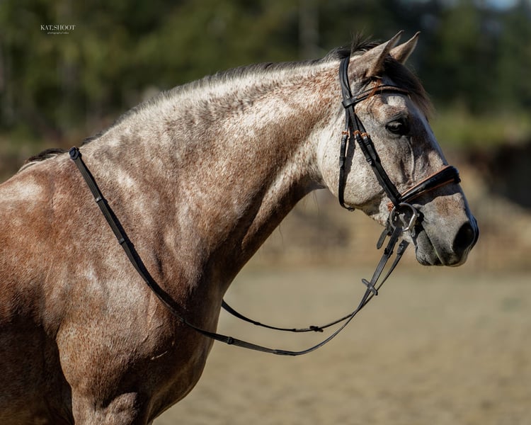 Looking for your next upper-level dressage partner? This 7-year-old Andalusian gelding, standing a solid 16hh, offers the brains, beauty, athletic ability, and trainability to go the distance. 🦄 Dressage Experience & Potential • Shown up to First Level with solid scores and show experience • Schooling Second and Third Level movements: shoulder-in, haunches-in, leg yields, walk-canter transitions, simple changes, early half-pass and more • Great sense of rhythm and uphill movement • Forward, sensitive, and comfortable in the contact without being hot or reactive • Shows strong potential for collected work and continued progression up the levels 🧠 Temperament & Handling • Calm, sensible, and not spooky – confidently hacks out alone or in company • No bite, buck, bolt, or rear • Very willing and loves to have a job – thrives in a consistent program • Great for farrier, bathing, and trailering – easy to handle on the ground and under saddle • A true gentleman with a kind, people-oriented disposition This gelding has been carefully developed with a correct foundation and is now ready to shine with an ambitious amateur or professional. Whether you're aiming for the show ring or looking for a classy, rideable partner, he’s the total package.
