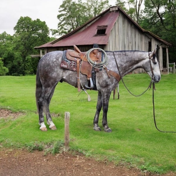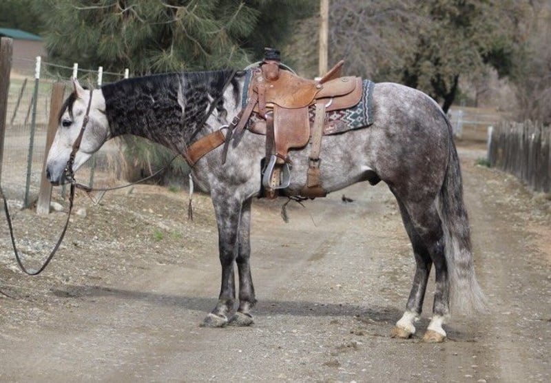 ONLINE AUCTION Place your bids at www.PlatinumEquineAuction.com Starting Bid $3500 Auction ends December 29th, 2024 Need a new saddle? Check out White Rock Saddles on our website or Facebook! Start the new year out right with this stunning 15.1-hand, 7 year old dappled grey gelding with his long beautiful mane and tail he embodies the epitome of both elegance and beauty, presenting an impressive package that captivates all who encounter him. His gentle demeanor and unwavering safety make him an ideal companion for riders of varying experience levels. On trail rides, Earl showcases his sure-footedness as he navigates through thick brush, across water crossings, and over downed trees with remarkable grace. In the arena, his fluid movement in all gaits reflects a soft and supple feel; he effortlessly stops and backs with ease a testament to his training and responsiveness. Earl’s ranch versatility shines through as he eagerly gathers cattle has branded and loaded trucks. Impressive in urban settings too, this reliable horse has been confidently ridden through congested streets amidst bustling traffic without a hint of trepidation around crowds or distractions.His cross-discipline abilities are equally noteworthy; riding English or Western allows Earl to flaunt his natural elegance fittingly suited for dressage pursuits. With a temperament that is both friendly and kind-hearted, he proves easy to handle loading into any trailer with composure while standing tied patiently at events or during grooming sessions with the farrier. Earl is so easy going you can stand up on him ride him in halter bareback while he stands there enjoying the fun. Whether participating in group rides or enjoying solo adventures under open skies, Earl consistently garners attention wherever he goes; parades are no exception as he’s participated in grand entries seamlessly navigating obstacles he will walk over bridges tires and tarps, bouncing balls nearby truly showcasing his adaptability. He is great in the pasture out with friends or will also enjoy a nice comfy stall. Earl is ready to start the new year with his new family. Please come meet this wonderful boy you won’t be disappointed contact Longhorn Ranch, Dina 831-537-1915 located in Paicines, CA. ONLINE AUCTION Place your bids at www.PlatinumEquineAuction.com Starting Bid $3500 Auction ends December 29th, 2024 Need a new saddle? Check out White Rock Saddles on our website or Facebook!