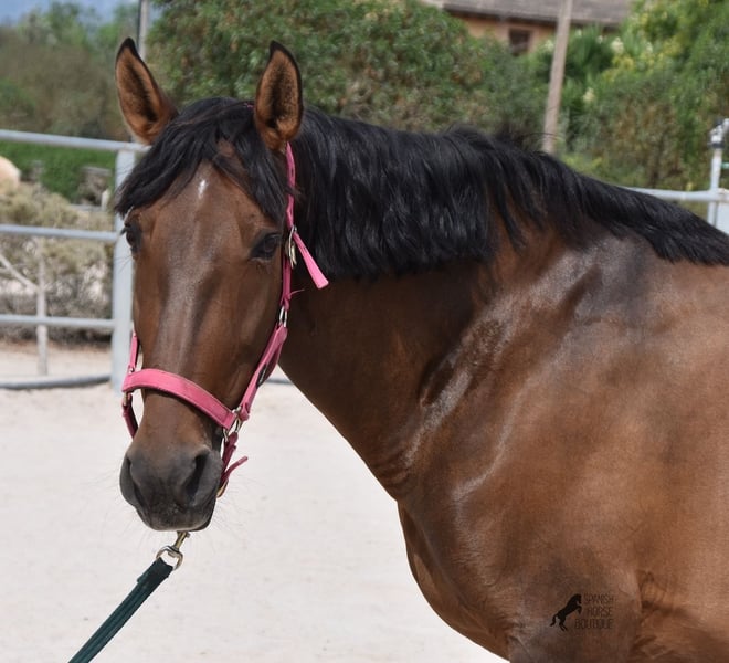 This PRE mare (Andalusian with ANCCE breed certificate), born in 2015, is a kind-hearted soul. As her owner has changed careers and is very busy, she has not been ridden for a year now. She is too good for just lunging and the owner has realized that it would be better for the mare to find a home where she can be kept busy again. She stands 24 hours a day in a paddock with an open stable, goes barehoof and will do almost anything for a carrot and a stroke ;) She is very, very lovingly looked after by the whole family, the only thing she lacks a bit is work to turn her round tummy into muscles. Before the break she was ridden on a basic level, but can also be retrained for other disciplines, such as western. Riding can also be organized on site, both classical English and Western style. Her pedigree is impressive, as she is sired by BOHORQUEZ and also has the exceptional stallion DECO by Yeguada Militar on her sire's side. On her dam's side, she can be traced back to Guardiola and Yeguada Militar. She was bred by a very friendly, horse-friendly breeder in Mallorca, but even there nature sometimes plays its whims. You can see a small indentation on the left side of her neck, which comes from her position in the mare and she has pressed into the neck with her carpal joint. This is NOT an injury, just an optical peculiarity, which will of course be taken into consideration. Place before price! She is currently in Mallorca! Videos and pedigree available on request. I would be happy to organize an AKU, riding, transport or even your trip if you come to see her in person. Details can be found on my website or in conversation.