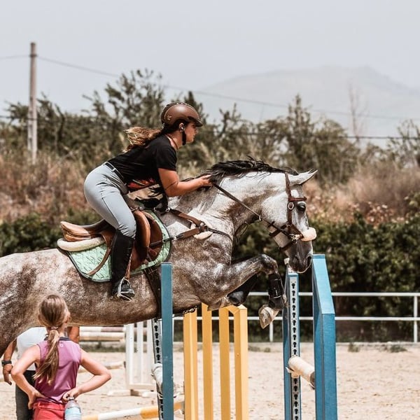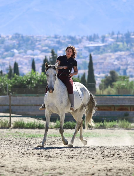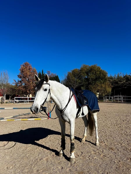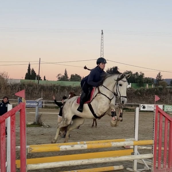Pandora, jument espagnole, âgée de 11 ans, environ 1,60 m. Charmante jument qui deviendra votre meilleure amie, Pandora est toujours joyeuse et positive face à de nouvelles aventures. Pandora a participé en dressage avec de bons résultats jusqu’au niveau 2/3. Elle a également concouru en saut d’obstacles jusqu’à 1 mètre et a été entraînée en cross-country. Pandora est aussi entraînée aux tricks et réalise par exemple : sourire, baiser, salut, s’allonger et rouler. Elle adore faire des balades et avance partout, habituée à la circulation, à l’eau, etc. Elle peut partir en balade seule ou en groupe avec d’autres chevaux. Elle a toujours été pieds nus et possède une très bonne qualité de sabots. Elle vit actuellement en paddock avec abri, mais peut aussi être en box. Facile à transporter et charge sans problème. Elle est avec la même propriétaire depuis ses 5 mois. Elle est uniquement vendue car sa propriétaire vient d’avoir son premier enfant et manque de temps. La propriétaire souhaite lui trouver un bon foyer où elle sera au centre de l’attention. Contactez-moi pour des vidéos et plus d’informations. Pandora se trouve dans le sud de l’Espagne, nous accompagnons toutes les démarches du processus d’achat. En savoir plus sur nous sur www.cthorsesales.com Contact : info@cthorsesales.com