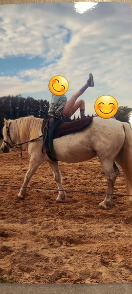 Sprzedam piękną klaczkę. Altana ma 12 lat i mierzy 135 cm w kłębie. Jest towarzyska w stadzie i odważna przy wszelkich odgłosach z otoczenia. Używana jest głównie dla dzieci, ale doskonale sprawdza się również u lekkich dorosłych jeźdźców. Nie jest koniem ciężkim. Ta urocza klaczka jest idealna dla jeźdźców rekreacyjnych oraz dzieci, które poszukują niezawodnego i przyjaznego konia. Chętnie jeździ w terenie, także przez wodę. Jest odważna na drodze, zna psy. Używana jest w terapii wspomaganej zwierzętami oraz w skokach przez przeszkody dla małych dzieci. Obecnie jest w pełni pod siodłem.
