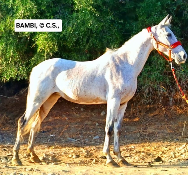 Hemos acogido a esta yegua de forma temporal. BAMBI tiene 12 años, está acostumbrada a paseos en campo y a ferias. También camina tranquilamente en la pista, aunque no realiza movimientos especialmente destacados. Ha estado más en el campo que en la pista. ¡Mide orgullosamente 1.65 m! (medido actualmente). Seguramente le faltan unos 70 kg. Lo primero que hicimos a su llegada fue desparasitarla. Sus cascos largos, como se puede ver en las fotos de la entrega, ya han sido arreglados por nuestro herrero 👌 Se entrega por motivos de cese de actividad. Su precio es 2.880 € hasta el 30.11.25, y hasta esa fecha su box está pagado. Se puede realizar un entrenamiento adicional, a partir de 3 meses ofrecemos precios por paquetes. Contáctanos por WhatsApp en 0034 670 097 903, Saludos, Carmen