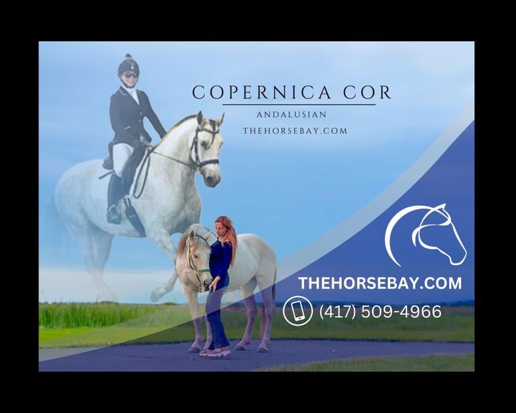 OPEN BIDDING ON THEHORSEBAY,COM. SALE ENDS ON 04/17 @ 5:20PM CT. More information is available on the website, including an UTD vet inspection, Coggins, video, images, and the owner's contact information to ask questions, request information, or make arrangements to come to visit. Copernica COR aka Bella is out of the Qualificado PRE stallion HIELO MOR and the successful fabulous REGATONA TNF. Due to her correct uphill conformation and presence, she appears taller than her actual height of 16 hands. Copernica is as stunning as she is affectionate. She has completed in dressage, has done exhibition rides, been shown at IALHA Nationals and been the trusted trail mount. She is a proven broodmare. Copernica Cor is a 12yr old purebred Andalusian mare who truly catches everyone’s eye with her Andalusian grace. She stands just shy of 16 hh with a lot of substance to her. She is white, boasts a beautiful head, loaded with shape, and is a fancy mover and loves people and rather be them than horses. Her conformation is correct in every way. Her pedigree speaks for itself. Copernica Cor is smart, soft, supple and is smooth & comfortable to ride. She is a sensitive and physical horse. There is absolutely no silliness to this horse, she does nothing wrong. She is uncomplicated and easy, soft, quiet & supple with her rider. She moves easily off the leg and seat. She does best with a light hand and goes well in a snaffle. He has had dressage training in the past but was off for a period of time due to foalings, so we are currently working on building her muscles back. Not only does Copernica Cor rides & drives but she is also a proven broodmare. She has put 2 incredible foals on the ground. She is a huge asset in a breeding program. She can be kicked out to raise foals, and happy to return to work. She has wonderful ground manners. Stalls great or happily lives outside and in stalls. Great with other horses, cross ties or stands tied, bathes and clips like a seasoned show horse, great for the vet and farrier, and always eager to spend time with you. Copernica Cor is 100% in every way. Easy keeper that requires no special cares or maintenance of any kind. She is clean legged, no scars or blemishes to be found, great feet. She is UTD on all cares including teeth and coggins. Located in Ringoes, NJ.