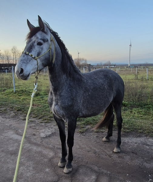 Nur aus persönlichen Gründen verkaufe ich meine PRE-Mix Stute. 3/4 PRE, 1/4 Friese. Bilder der Eltern, sowie Stammbaum der Mutter kann zugesendet werden. Sie ist in Deutschland geboren und seit sie 4 Monate ist in meinem Besitz. Sie wird nur verkauft, da ich ihr zeitlich nicht gerecht werde. Sie ist ein junges Pferd, hübsch, intelligent, sozial und fordernd. Spaziergänge alleine oder in Gesellschaft sind für sie kein Problem. Sie wird zukünftig sicherlich eine Lebensversicherung im Gelände. Ist an allem interessiert und empfindet "gruselige Dinge als willkommene Herausforderung", die sie gerne bereit ist mutig mit ihrem Menschen zu erkunden. Sie war letztes Jahr, 3 Monate schonend im Beritt: kennt Bodenarbeit, Freiarbeit und Reitergewicht. Ist reittechnisch jedoch als "roh" zu bezeichnen. Da sie ein junges intelligentes Pferd ist braucht Sie eine sensible, konsequente Hand. Dann ist sie bereit alles für ihren Menschen zu tun. Sie kennt reine Offenstallhaltung (gemischte Herde) und Offenstall mit nachts Box. Offenstall würde ich mir weiterhin sehr für sie wünschen, reine Boxenhaltung möchte ich ihr zukünftig gerne ersparen. Bei weiteren Fragen wünsche ich mir gerne erstmal Mailkontakt inkl. Angabe Telefonnummer. Weitere Bilder auf Anfrage. Gerne kann ich auch zurück rufen. Mir ist es wichtig, dass Sie in gute, "langfristige" Hände kommt. Deshalb zählt hier auf jedenfalls Mensch vor Preis.