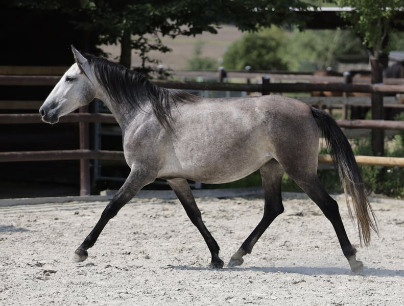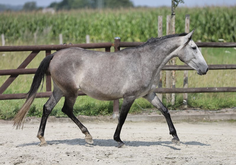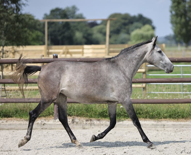 Caña, a nearly 4-year-old typical Andalusian mare. She was born with us and has always grown up in a herd and on large pastures. Still unbroken, she gives her hooves and is very well-behaved and uncomplicated to handle. Final height approximately 155 cm +-. She can either stay for further training or move directly to her new home. Serious inquiries are welcome!!
