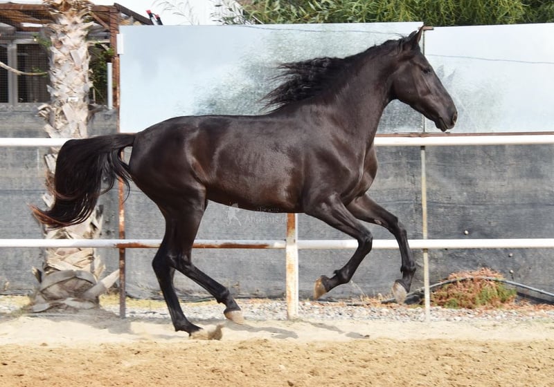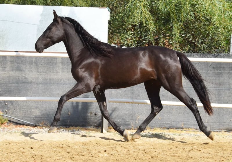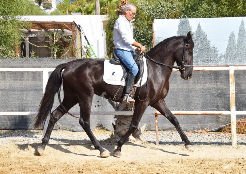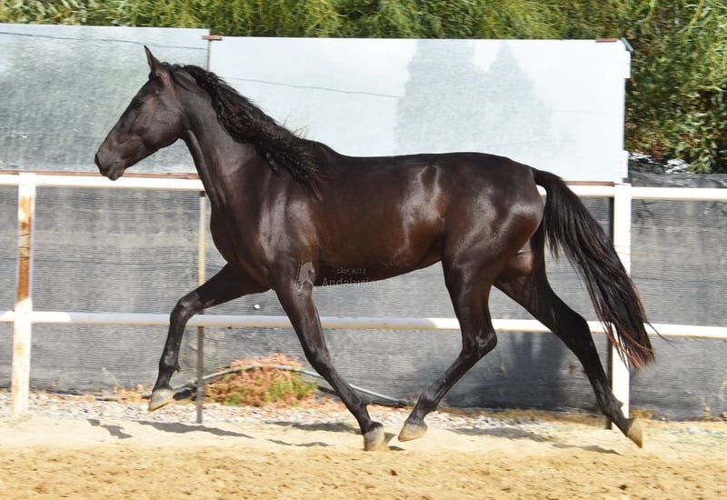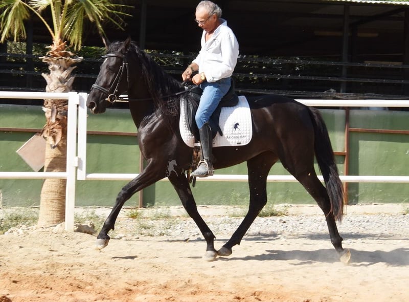 carattere gentile, lungato con sella e bridle, montato, buone movenze www.elegante-andalusier.com