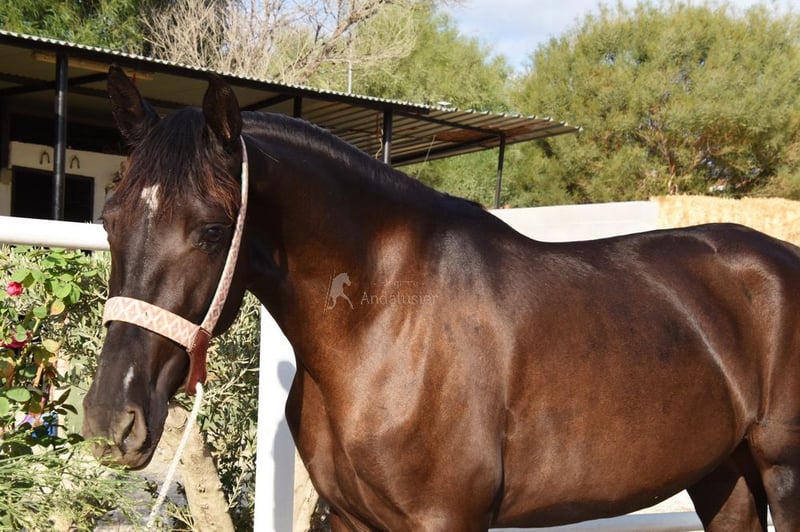 lieber Charakter mit etwas Temperament, in den Grundgangarten geritten, gute Bewegungen www.elegante-andalusier.com