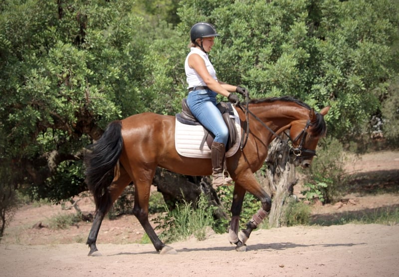 Diese hübsche und freundliche junge Andalusier-Stute sucht noch ein gutes Zuhause, um weiter gefördert und gefordert zu werden. CHISPA ist bereits in Allen drei GGA auf Trense angeritten und war auch bereits etwas im Gelände. Sie meistert sich im Training hervorragend und zeigt sich brav, gelehrig und fein. Im Handling ist sie sehr wohlerzogen und lässt sich problemlos satteln, putzen etc. Sie durfte auch bereits erste Erfahrungen im Gelände sammeln und zeigt sich dort unerschrocken und ruhig. Gerne kann sie auch zur weiteren Ausbildung noch hier bei mir bleiben. Sie ist es gewohnt, mit anderen Stuten zusammen 24/7 draußen zu stehen, ist sehr sozial und in ihrer Haltung unkompliziert und anspruchslos. Sie läuft derzeit barhuf und hat sehr gute Hufe. CHISPA besitzt einen spanischen Equidenpass ohne Abstammungsnachweis. Standort Spanien.