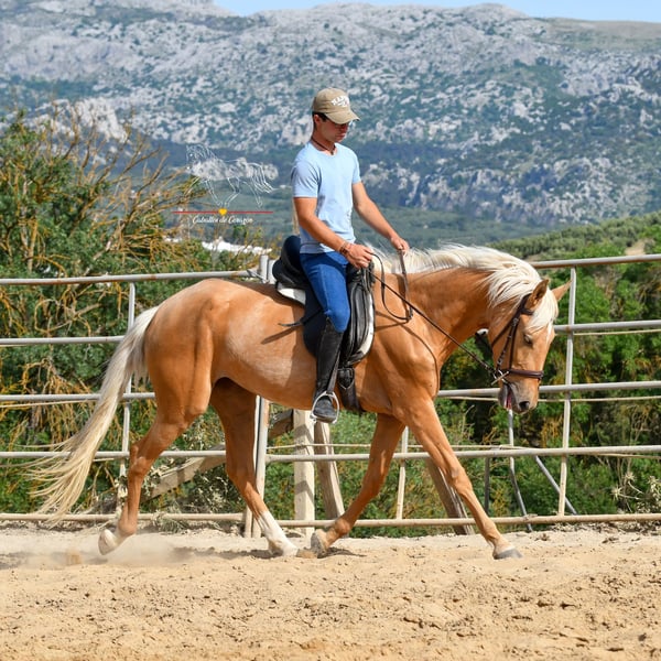Mignonne pouliche de 4 ans Les photos datent de juin, lorsqu’elle venait tout juste de sortir du campo et n’était en selle que depuis trois semaines. Depuis, elle a pris un peu plus de courbes. Elle est en entraînement léger et a été montée en selle dans ses allures. À mon avis, c’est un cheval fantastique — à connaître cet hiver, continuer un peu, puis repartir de plus belle au printemps prochain. Une occasion idéale d’acquérir une jolie et encore inexploitée jument d’une couleur spéciale. Elle se trouve à Malaga. Le transport partout est possible.