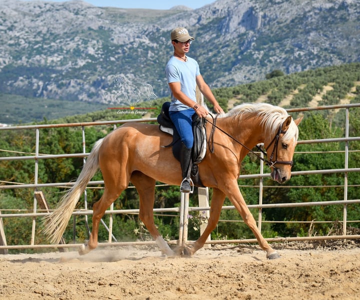 Sweet 4-Year-Old Mare The photos are from June, when she had just arrived from the pasture and had been under saddle for only three weeks. She has developed a bit more muscle and curves since then. She is in light training and has been ridden in the gaits. In my opinion, a fantastic horse – get to know her this winter, continue her training a little, and then really start her career next spring. This is a great opportunity to acquire a stylish and unspoiled mare in a special color. Location: Malaga Transport worldwide is possible