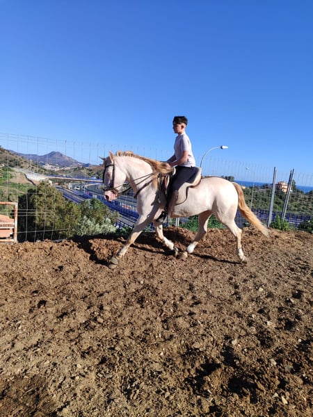 Está yegua es válida para niños y principiantes. Tiene 5 años. Mide con baston 1,58 Muy noble para toda la familia. Sana 100% Contactar por whatsapp