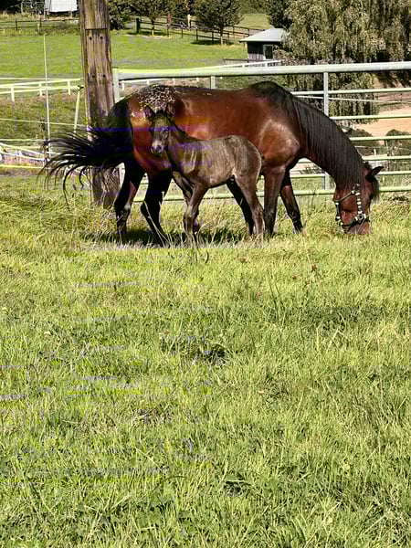 Due to an unreliable buyer, the little mouse is unfortunately available again. I am offering my wonderful 7-year-old Andalusian mare for sale. She is about 1.42 m tall and a real treasure to handle. She is very sweet, people-oriented and has been ridden recreationally. She is currently at foot with her 4-month-old foal, which can be weaned in about 2 months. The mare is an ideal partner for leisure and family. With her calm nature, she is wonderfully suited as a family horse and always places her full trust in her owner. The foal is also a little ray of sunshine - curious, open-minded and full of energy. It is growing up in a loving environment and is already showing promising development. It is possible to sell both together or to buy them separately as soon as the foal can be weaned. If you are looking for a gentle, uncomplicated mare - with or without a foal - please contact me. I will answer all your questions and look forward to placing them in the best hands! Mare 3900€ Foal 2500€ Both 5500€
