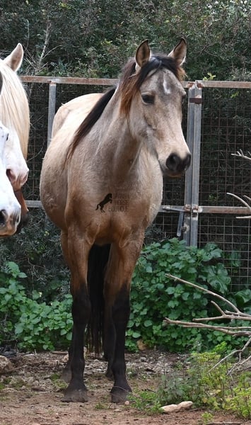 Born in 2019, this dun mare is a real raw jewel. Translated, the golden child's name means "chamomile" and she also has a very calming charisma. Although she is completely raw, she opens up within a few minutes and enjoys being cuddled and handled. She then follows you even when the herd moves in a different direction. With this people-friendly, open character, it will certainly be easy to break her in. Of course, there is also the option of organizing a ride on site. In the herd she is of medium to low rank and due to the 24h robustness, she is well socialized, resistant and well tied up, thanks to the stony ground. I estimate her final height to be 156cm, as it was not possible to measure her freely. She is currently in Mallorca! Videos and photos of the equine passport are available on request. I would be happy to organize an AKU, riding, transport or even your trip if you come to see her in person. Details can be found on my website or in conversation.