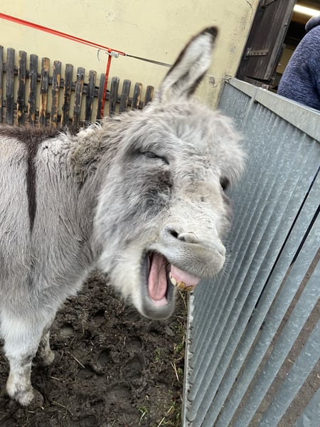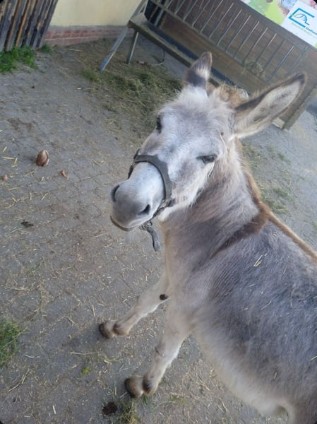 Pferdinand ist ein relativ kleiner Esel Hengst mit einem Stockmaß von ca. 1 Meter und ist am 05.10.2022 in unserem Tiergehege geboren. Das bedeutet er kennt den Umgang mit anderen Artgenossen sowie alltägliche Einflüsse wie täglichen Kontakt mit verschiedenen Personen, Kinder am Zaun, er lässt sich anfassen und putzen und kennt auch schon den Tierarzt. Da es in unserer Eselherde bereits einen Leithengst gibt, musste er eine Zeit lang getrennt stehen, um Auseinandersetzungen, Verletzungen oder Schlimmeres zu vermeiden. Diese Entscheidung fiel uns nicht leicht, war aber zu seinem Schutz notwendig. Durch die zeitweise Einzelhaltung ist er aktuell sehr aufmerksam und manchmal etwas überdreht, wenn Besuch kommt. Er freut sich über jede Form von Aufmerksamkeit und überschätzt sich dabei gelegentlich selbst. Mit klarer, ruhiger Führung und konsequenter Haltung wird er sich jedoch weiter gut entwickeln. Er sucht ein Zuhause bei erfahrenen Eselhaltern, die ihm Sicherheit, Geduld und artgerechten Kontakt zu passenden Artgenossen bieten können. Mit der richtigen Führung wird er sich zu einem tollen, charakterstarken Begleiter entwickeln. Bei ernsthaftem Interesse freuen wir uns über eine Nachricht und erzählen gerne mehr über ihn! Preis verhandelbar!